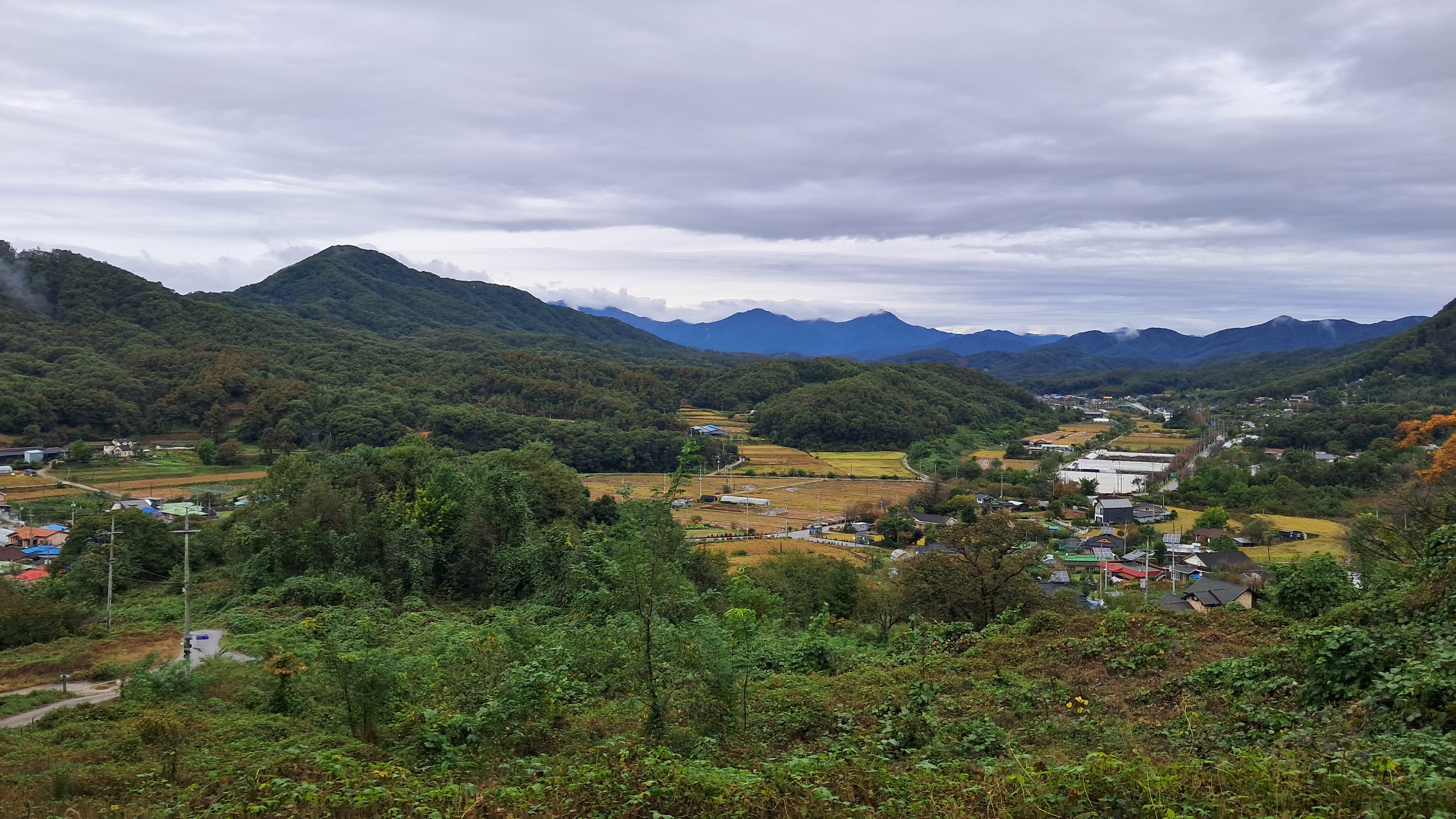 들판은 수확이 끝난 논도 있고 그렇지 않은 곳도 있습니다.