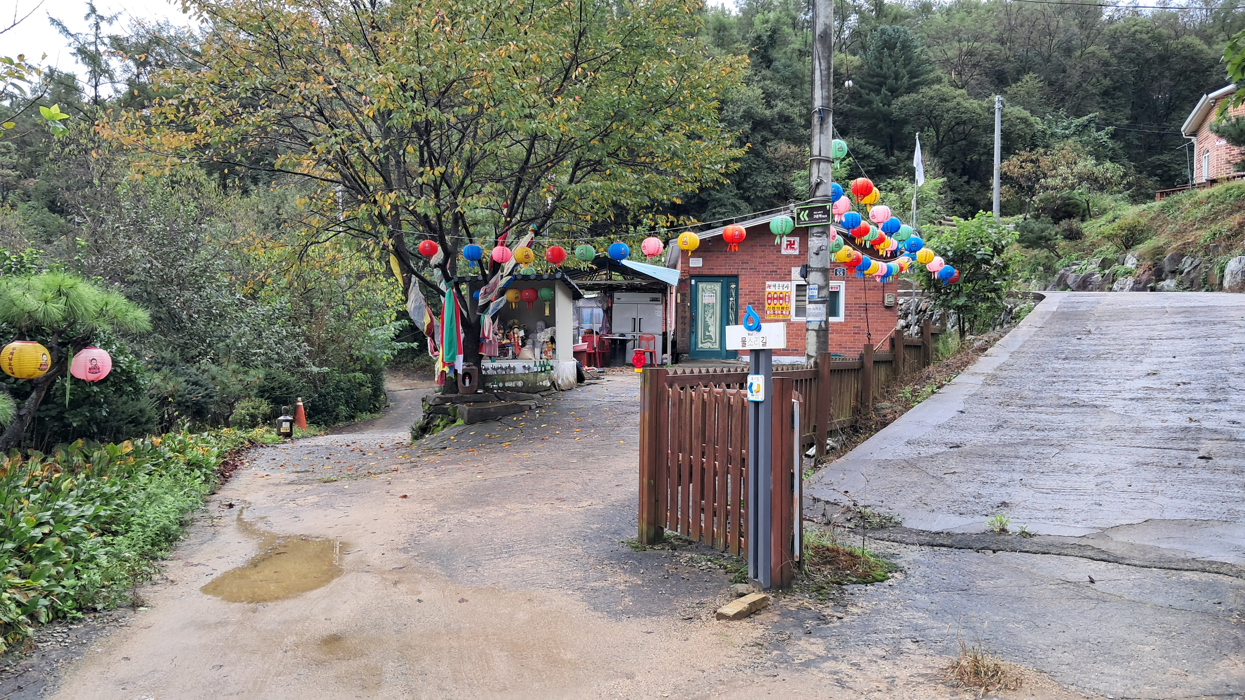 비가 내린 후라서 옛길앱이 알려주는 길은 물 웅덩이가 많습니다.