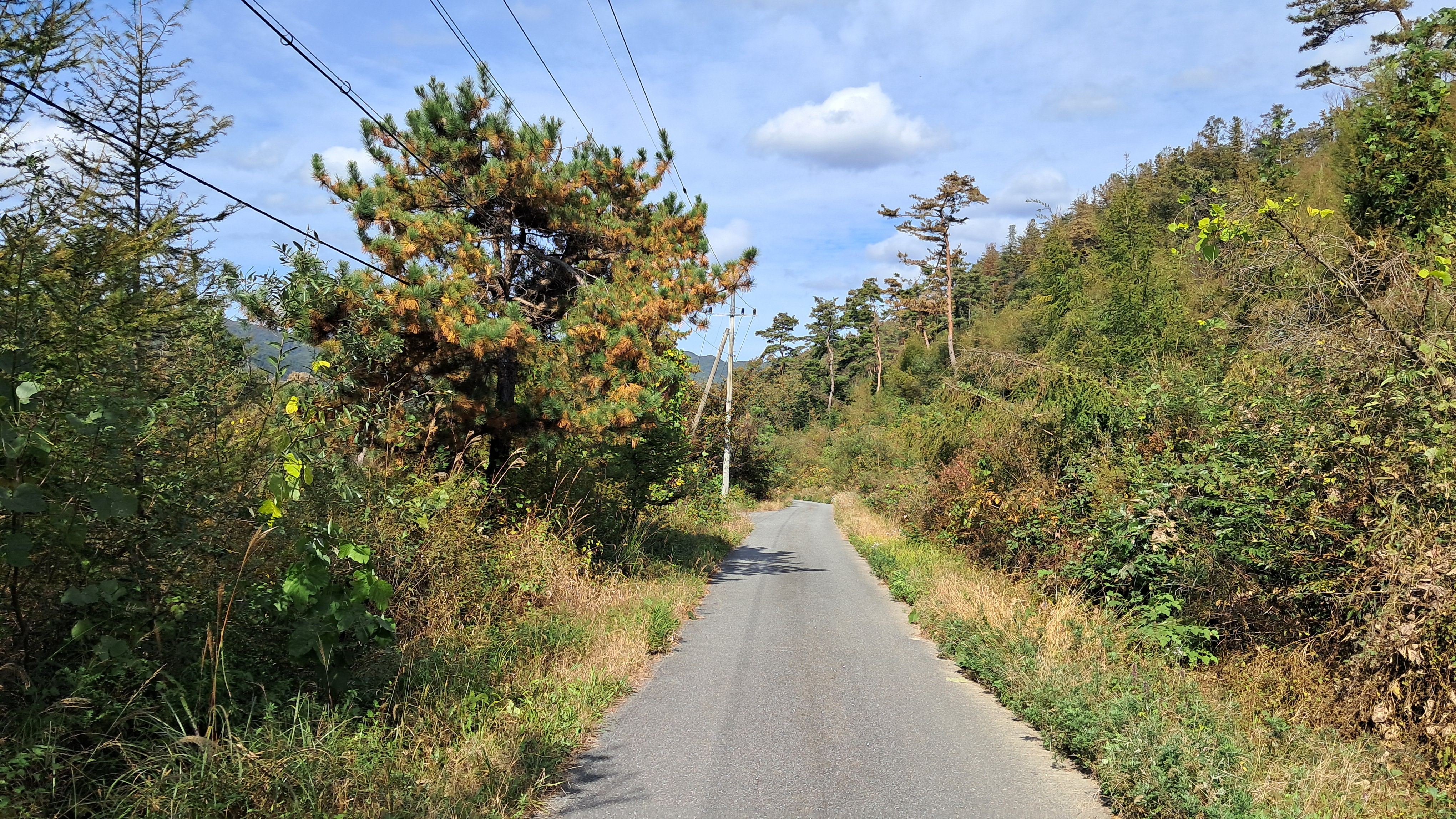 전봇대도 길을 따라 이어져있습니다.