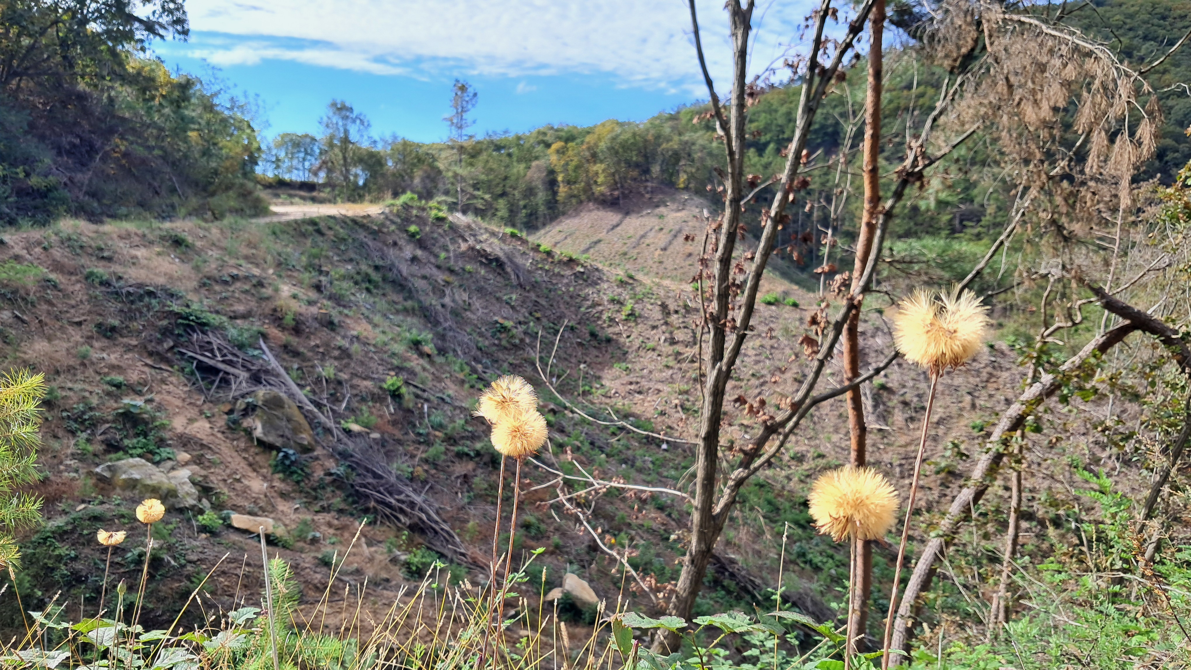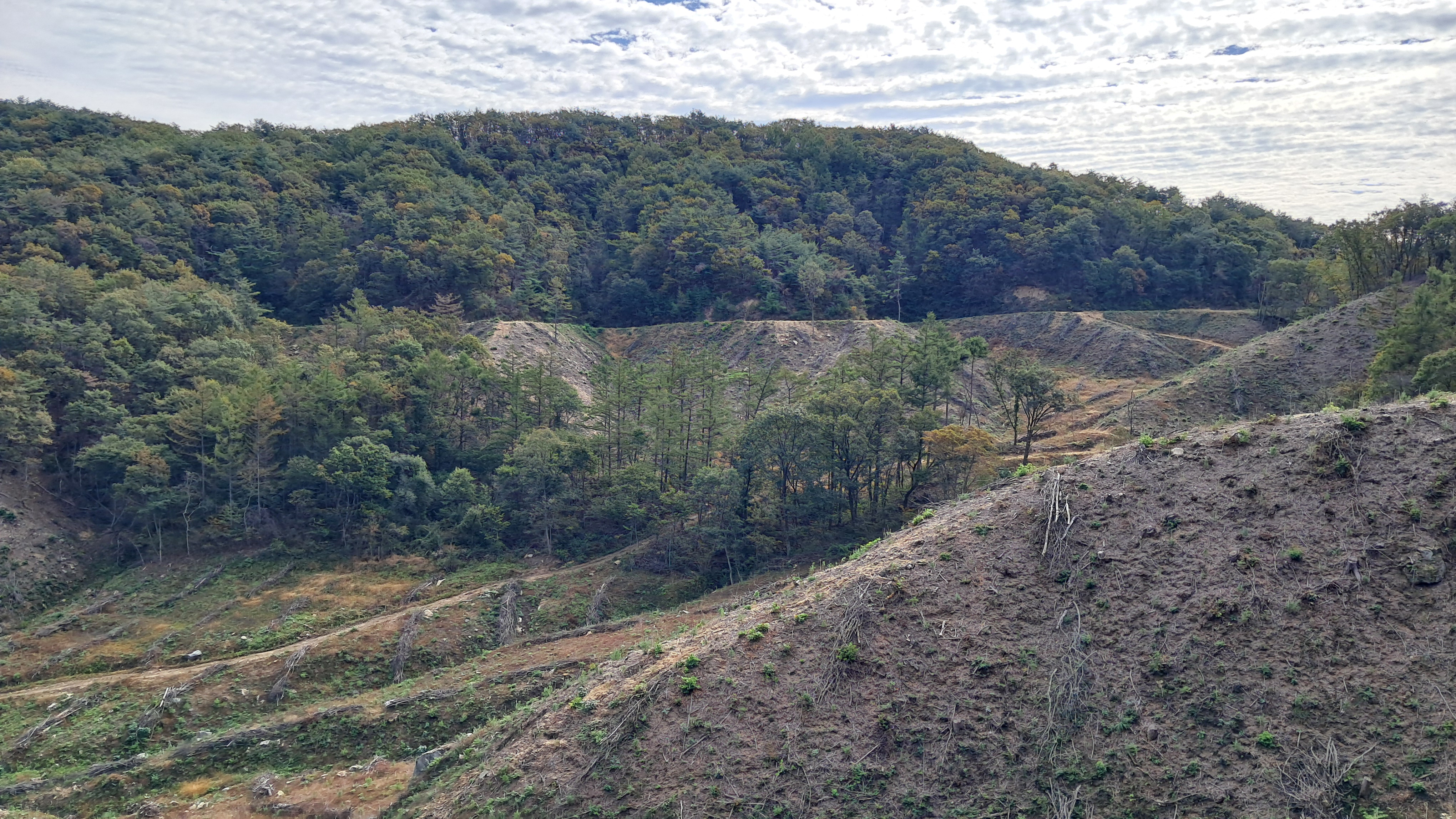 숲은 점차 다시 하늘을 열어주고 시야는 트입니다.