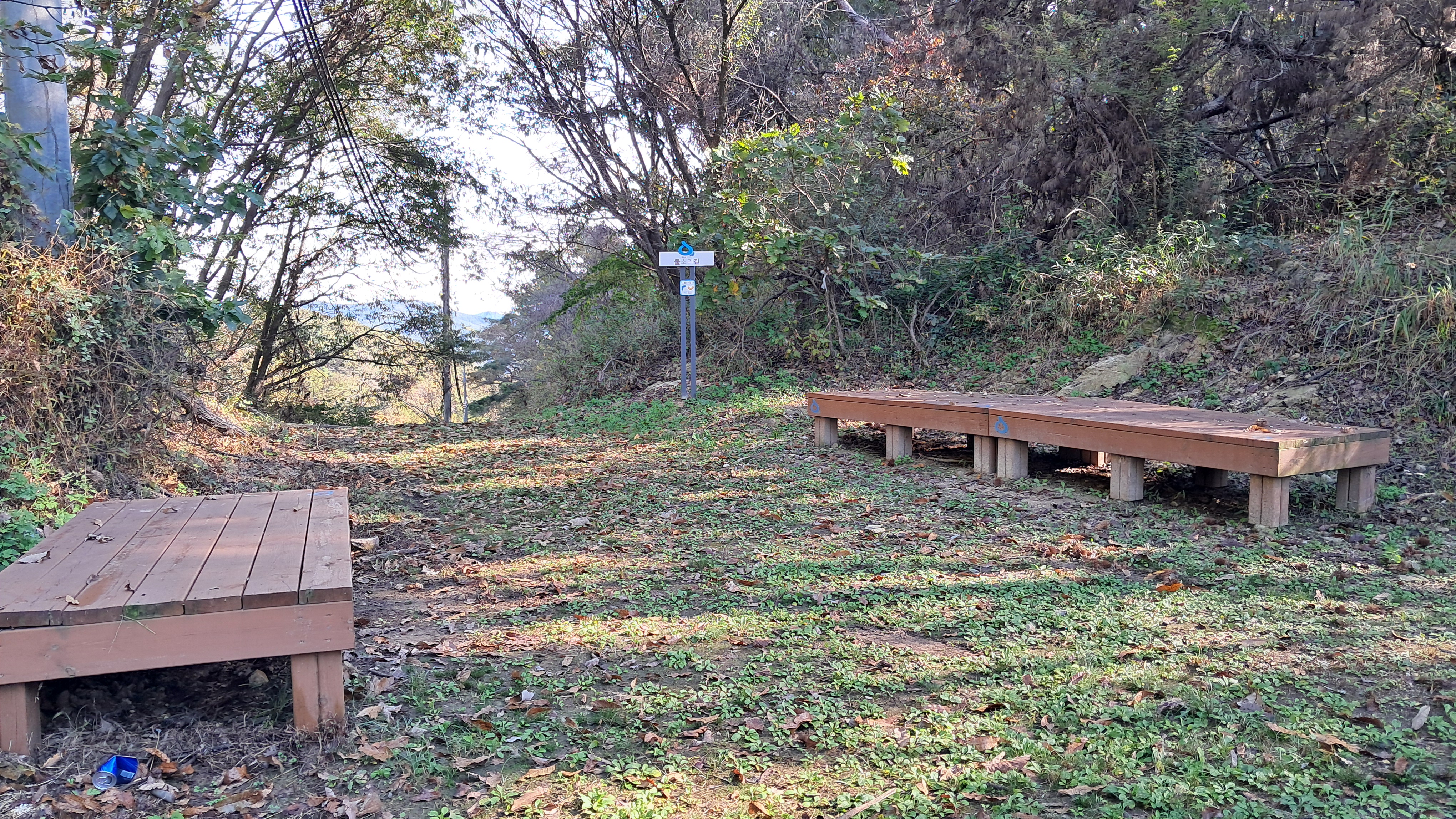 고개 위에는 이곳에도 물소리길 평상 휴식터가 설치되어 있습니다.