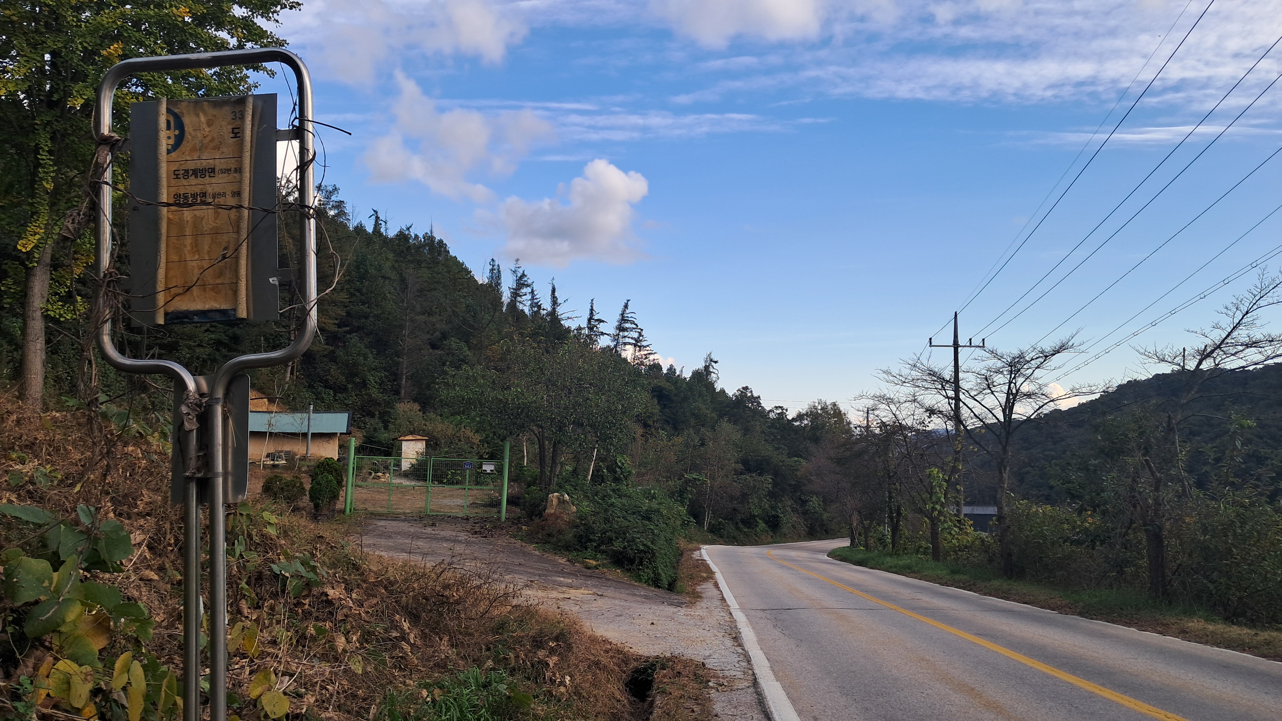 이곳 도경계를 지나는 유일한 버스는 하루 2회 운행하는 58번 버스입니다.