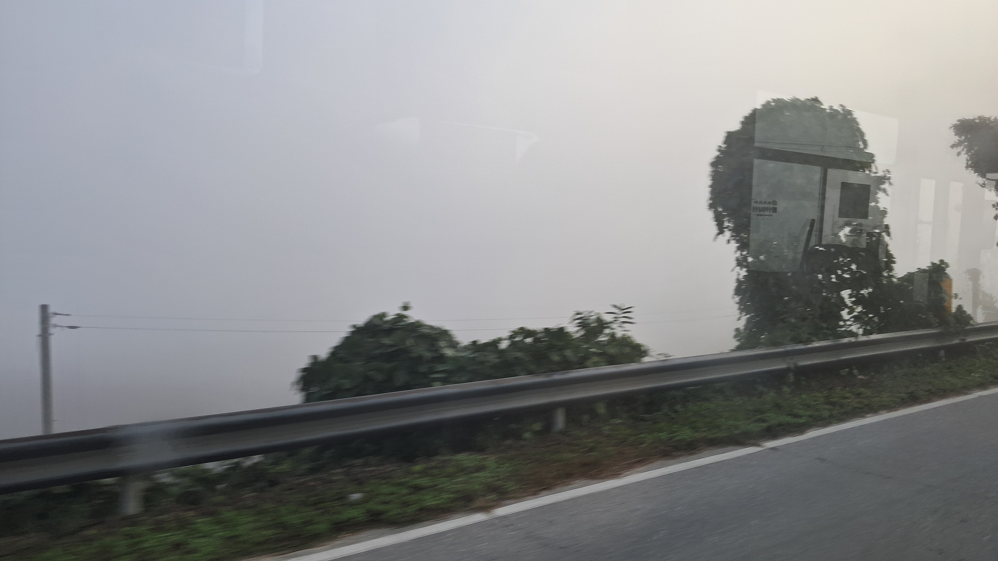 안개가 가득해 창밖이 거의 보이지 않습니다.