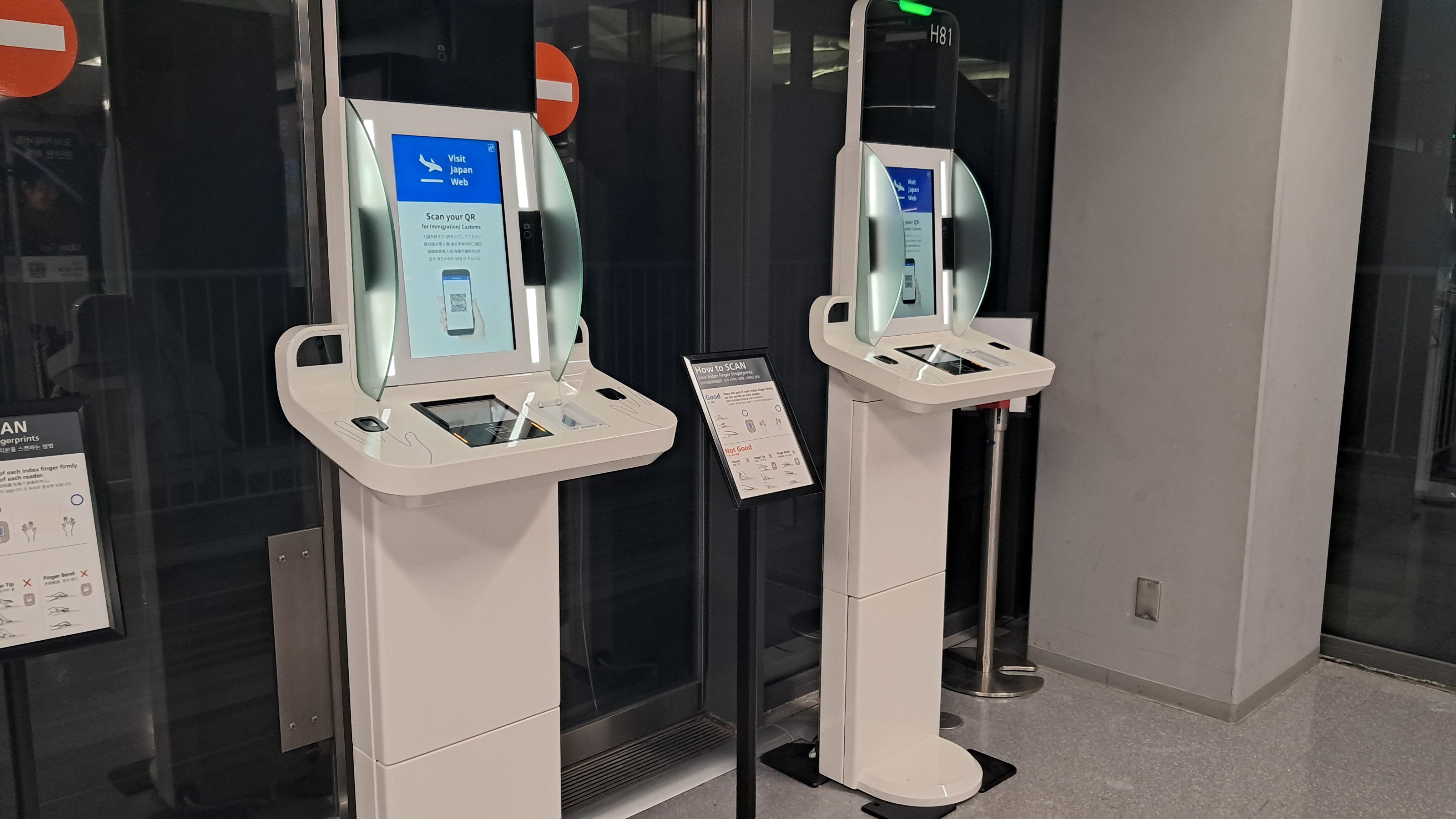 비행기에서 나오자마자 판독기계에 여권과 QR코드를 인식시킵니다.(얼굴도 촬영)