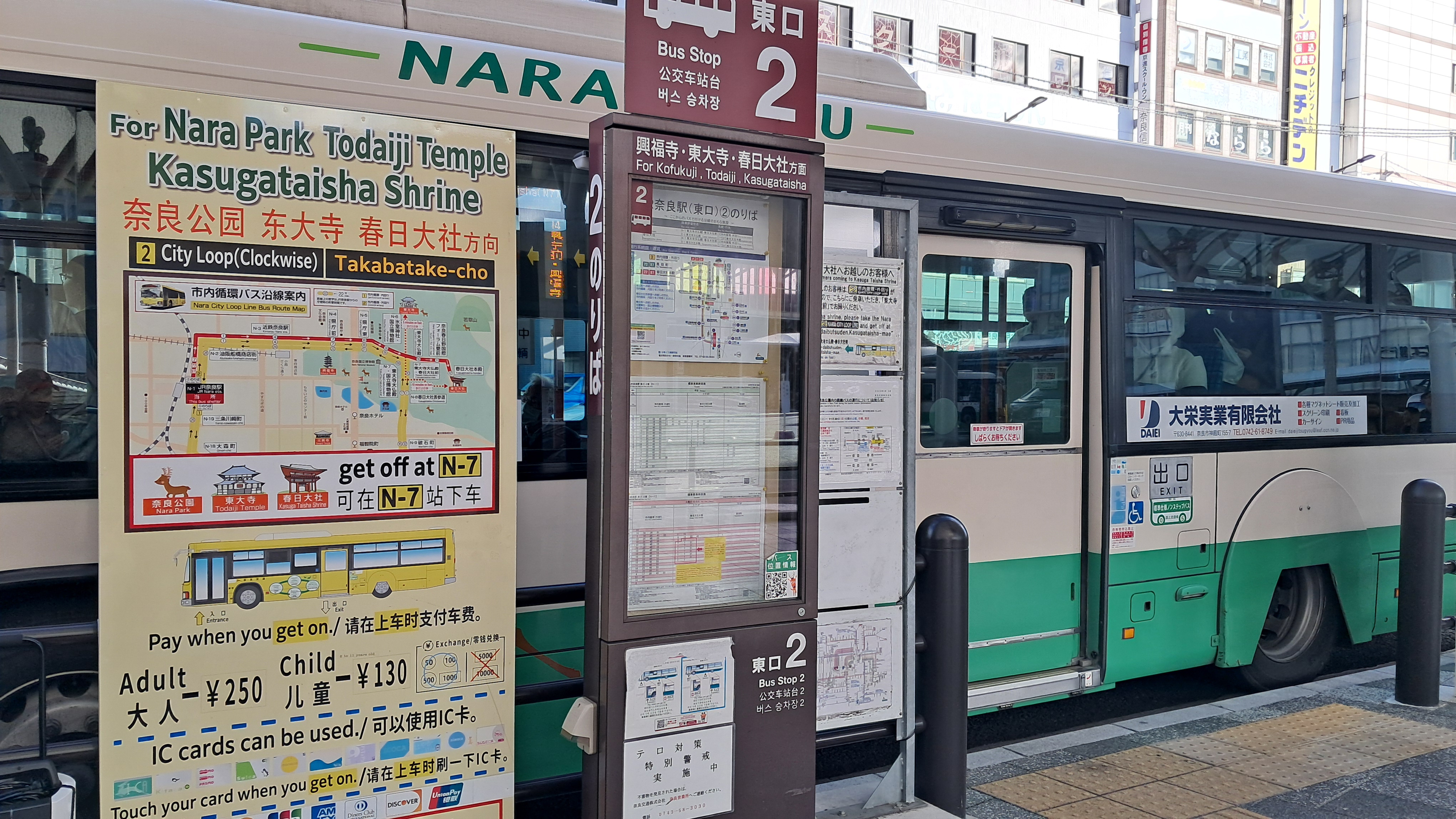 JR나라역 앞으로 나오면 버스 승강장이 있는데 2번에 도다이지행 버스를 탈 수 있습니다.