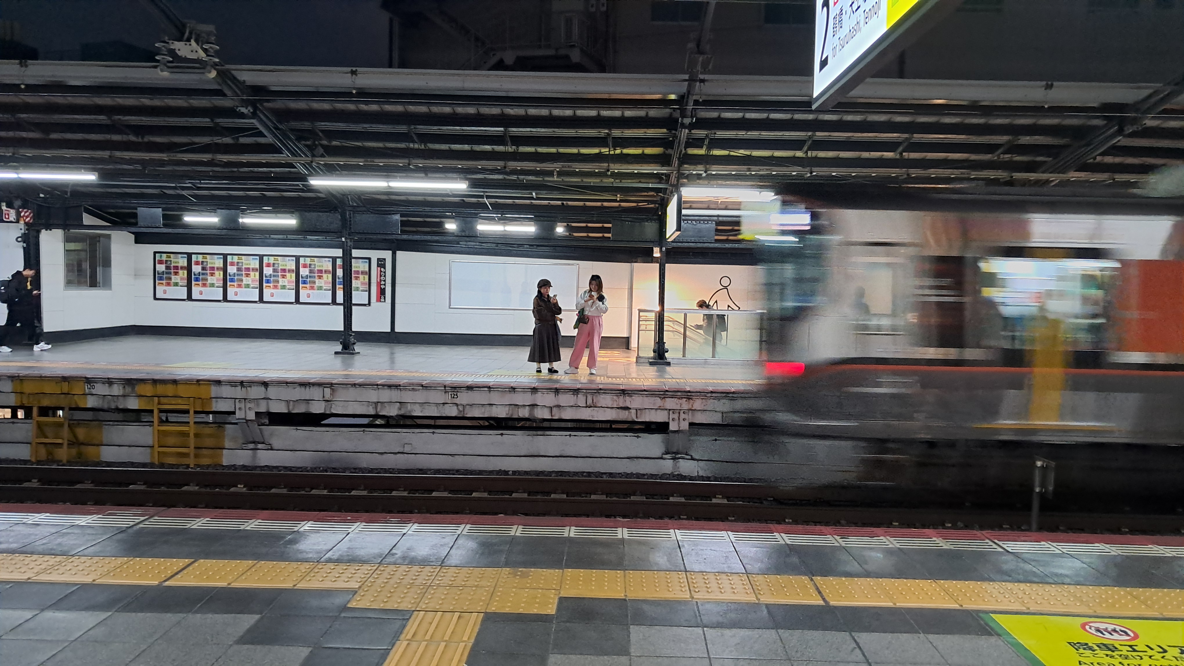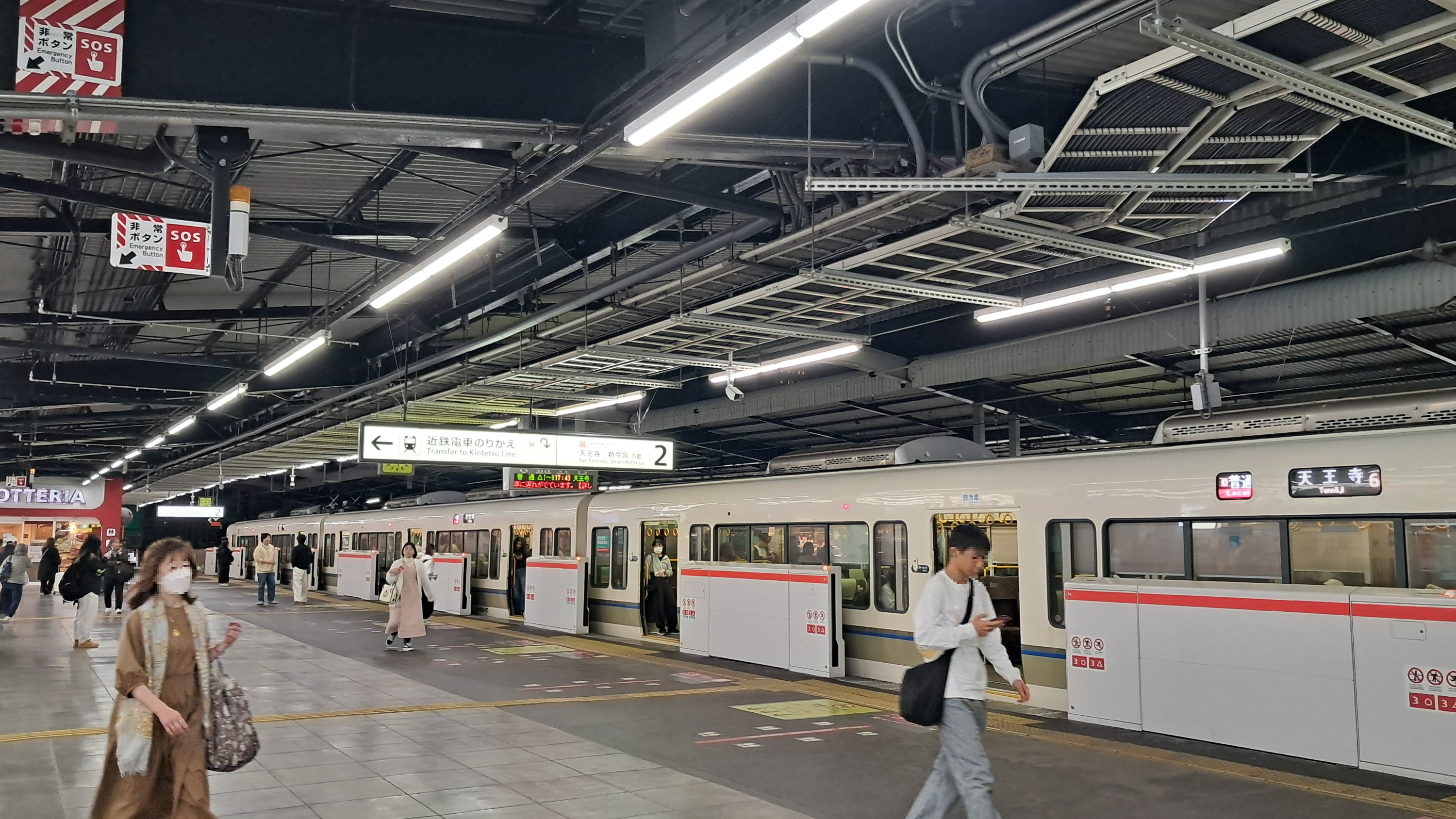 쓰루하시 방면의 승강장으로 올라왔습니다.