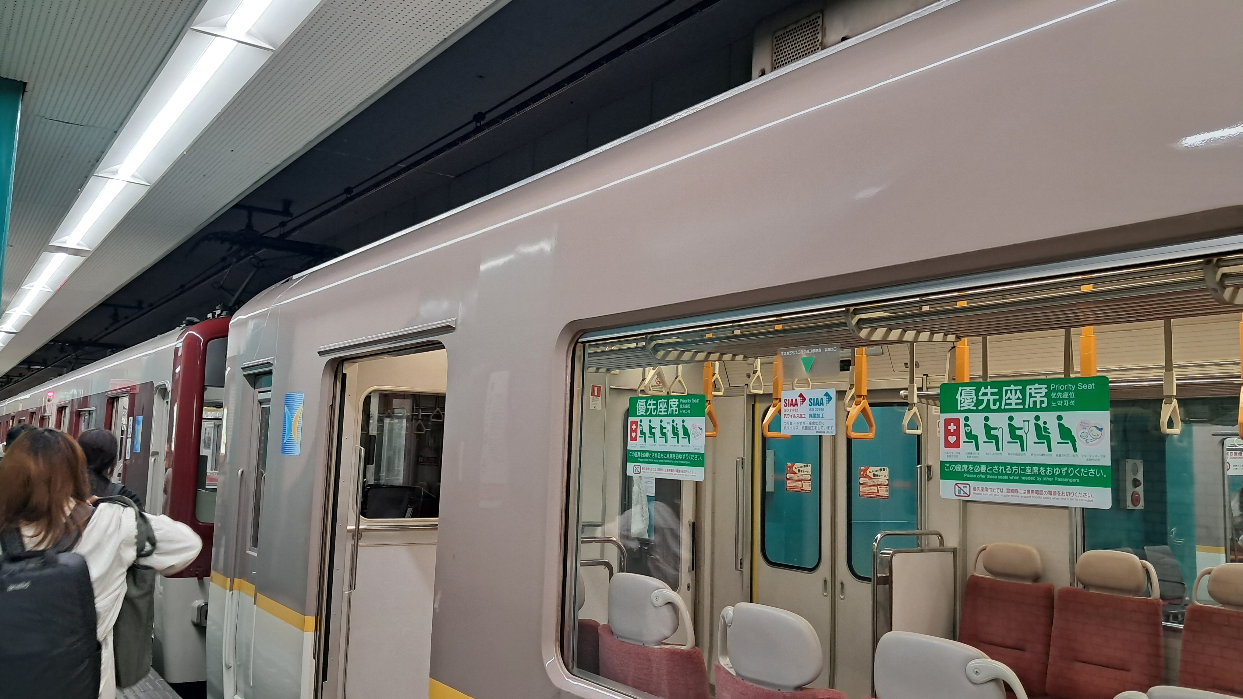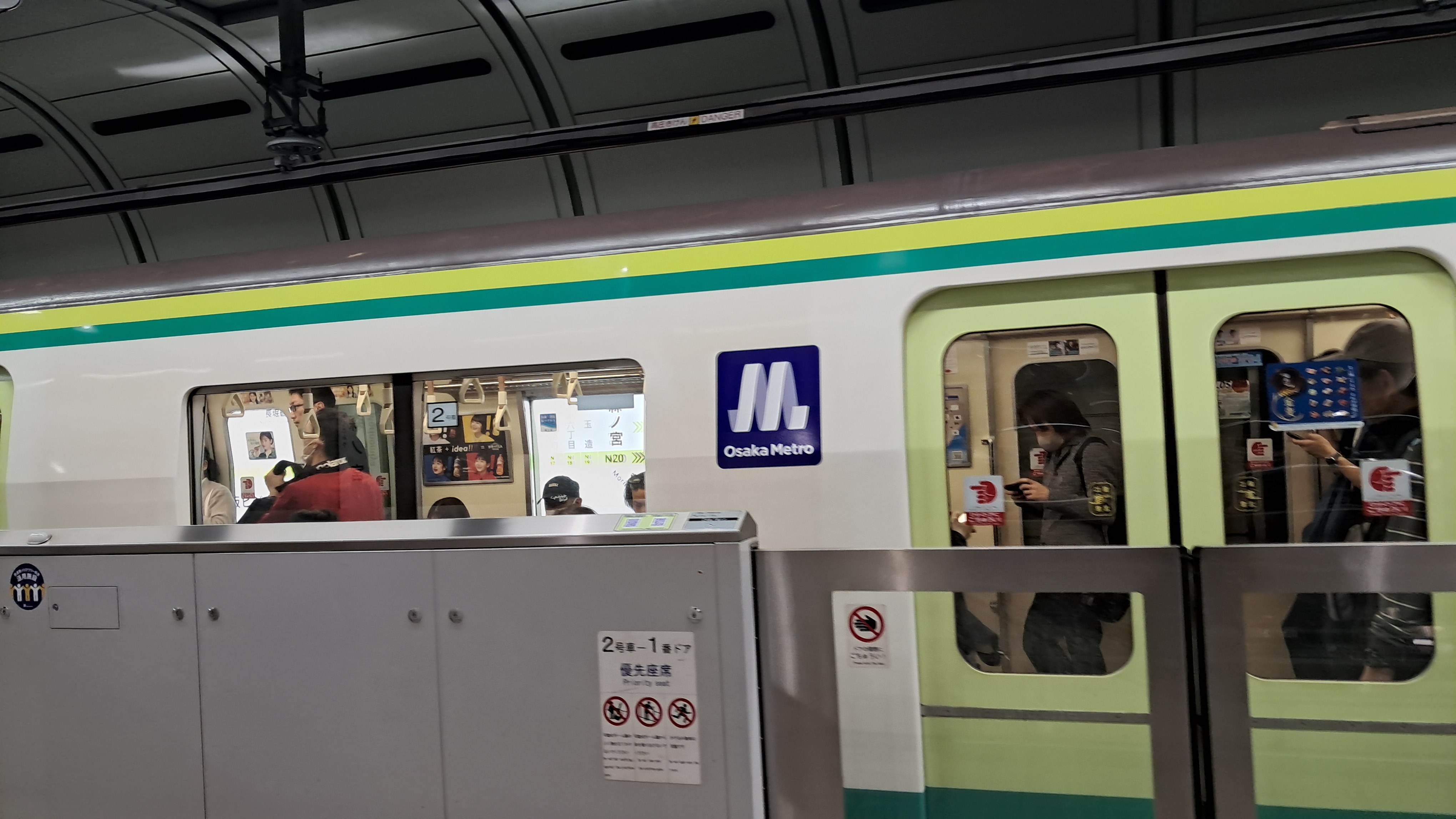다음 이동장소인 공중정원을 관람하기 위해 미도스지선 신오사카행 열차를 탑승합니다.