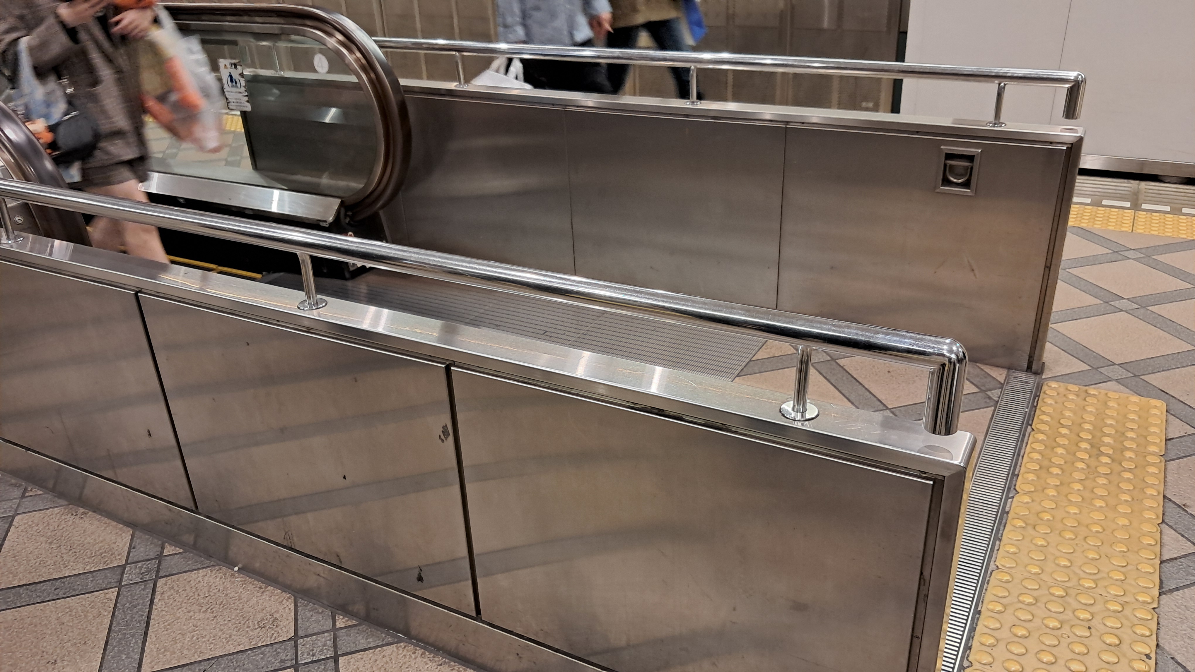 에스컬레이터의 난간벽이 튼튼하게 설치되어 있습니다.