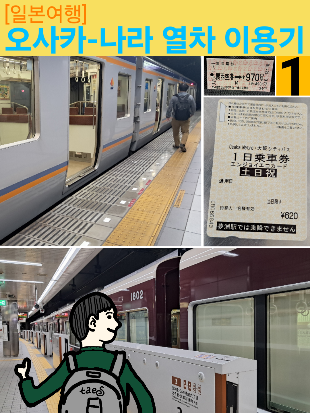 일본 오사카-나라 여행기 중 철도 이용 부분을 따로 정리해 봅니다.
