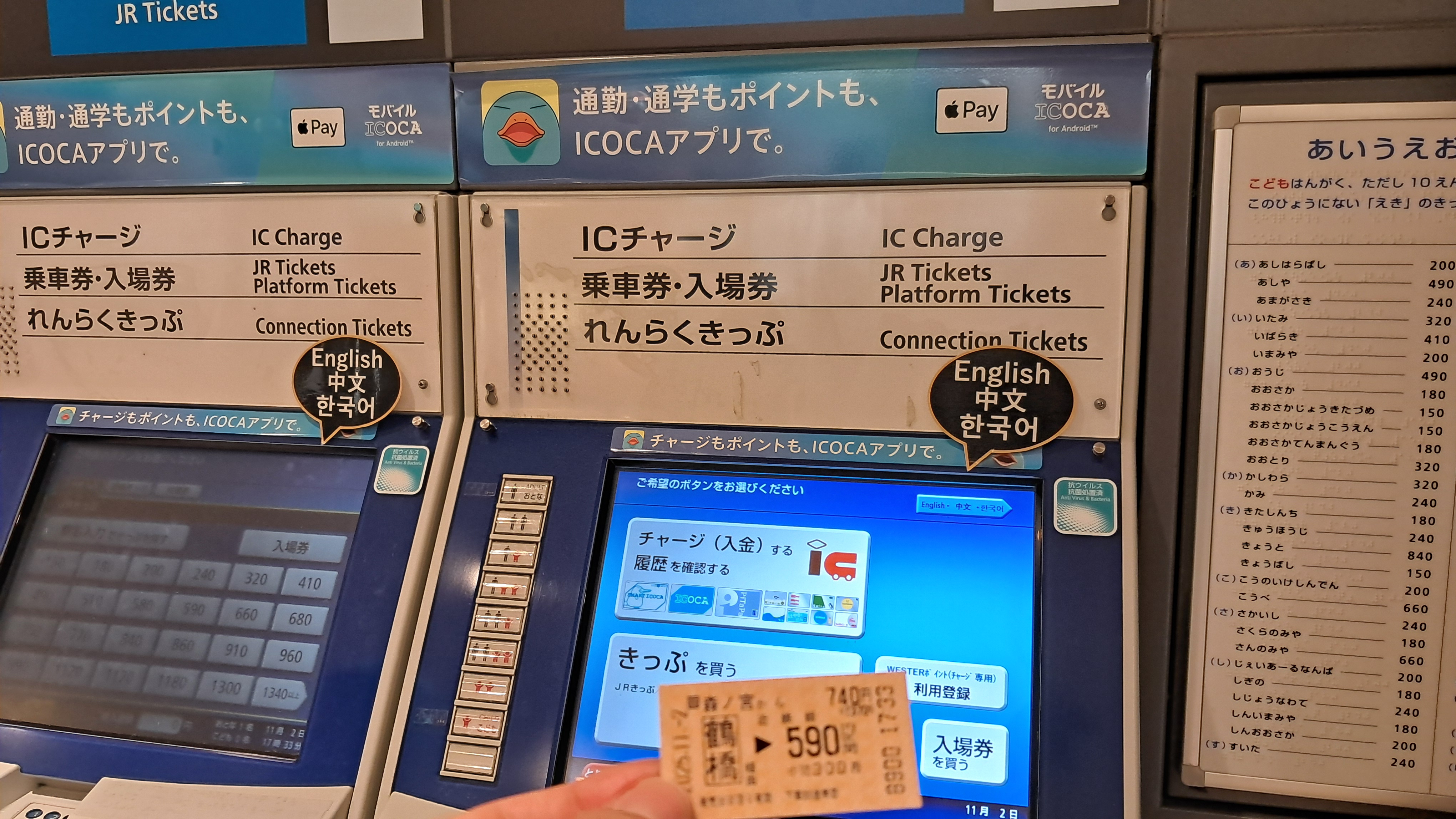 일행 중 일본에 몇 번 다녀온 분이 있어서 쉽게 발매기에서 매표할 수 있었습니다.