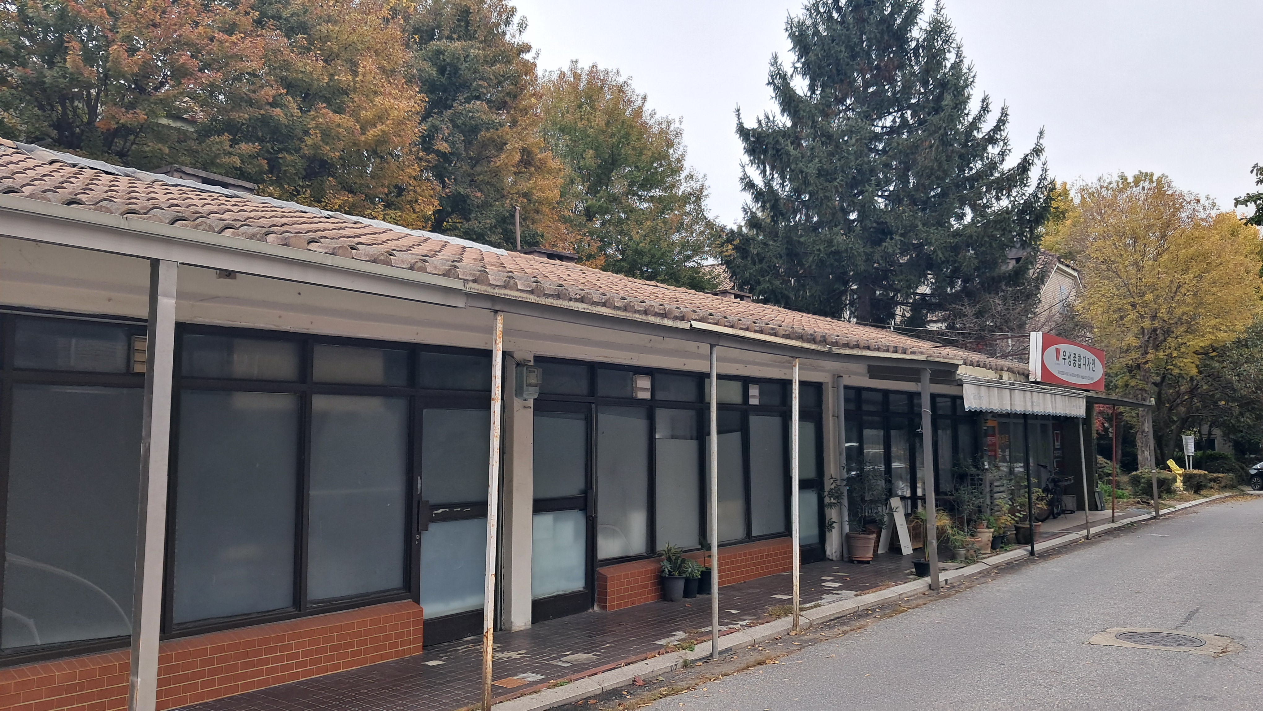 온온사를 나와서 도로 인도를 따라 걸어갑니다.
