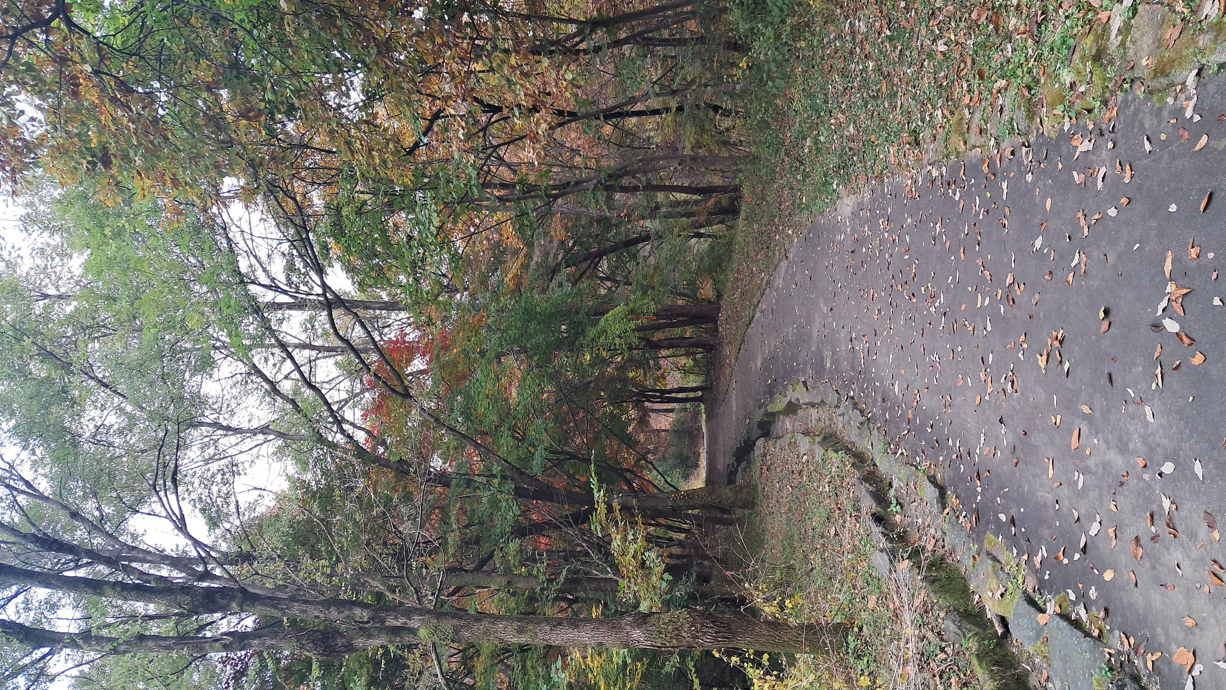 울긋불긋해진 숲길을 따라 조금 내려가면 도로가 나옵니다.