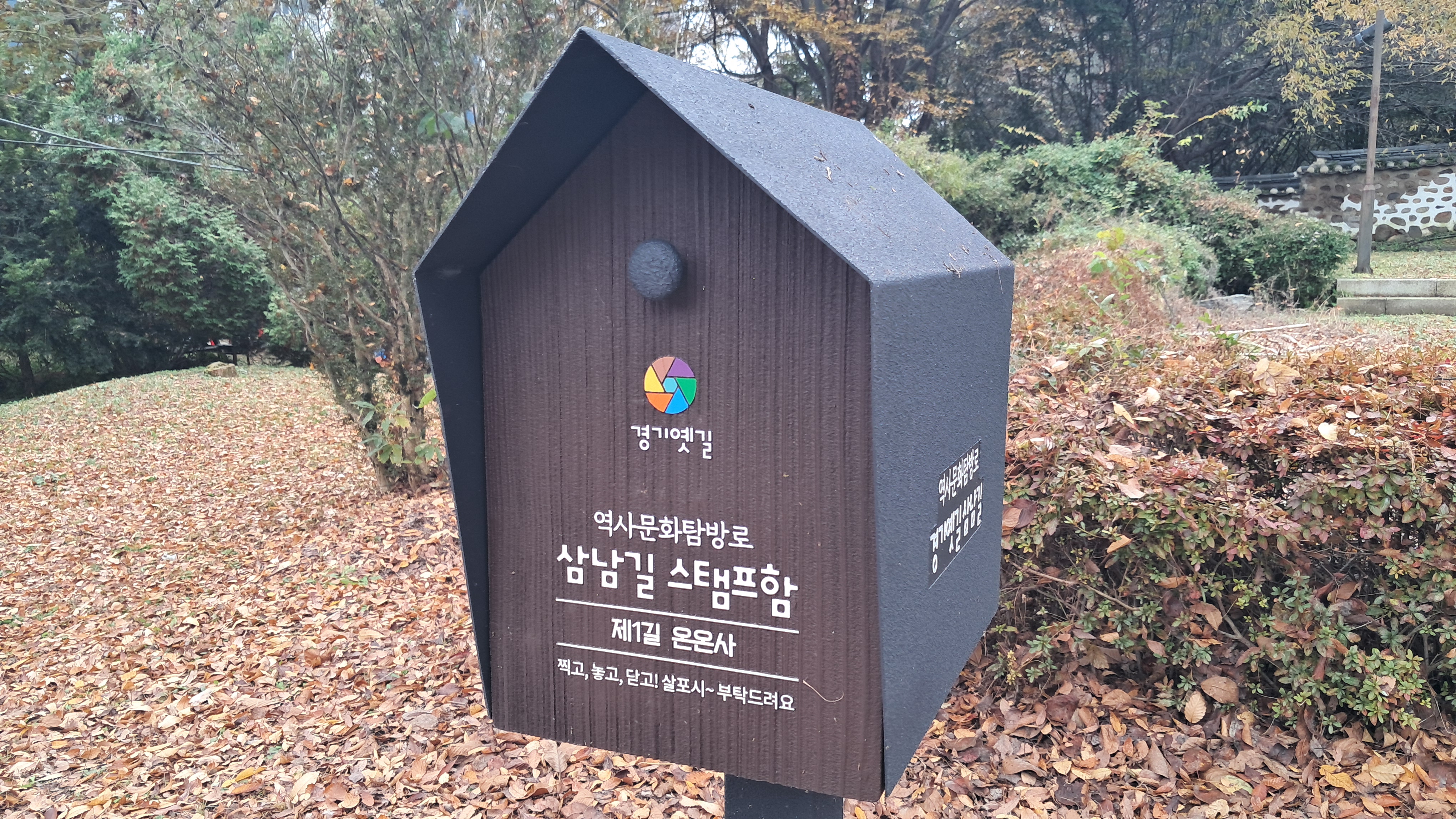 입구로 들어가면 온온사가 위치해 있고 스탬프함이 설치되어 있습니다.