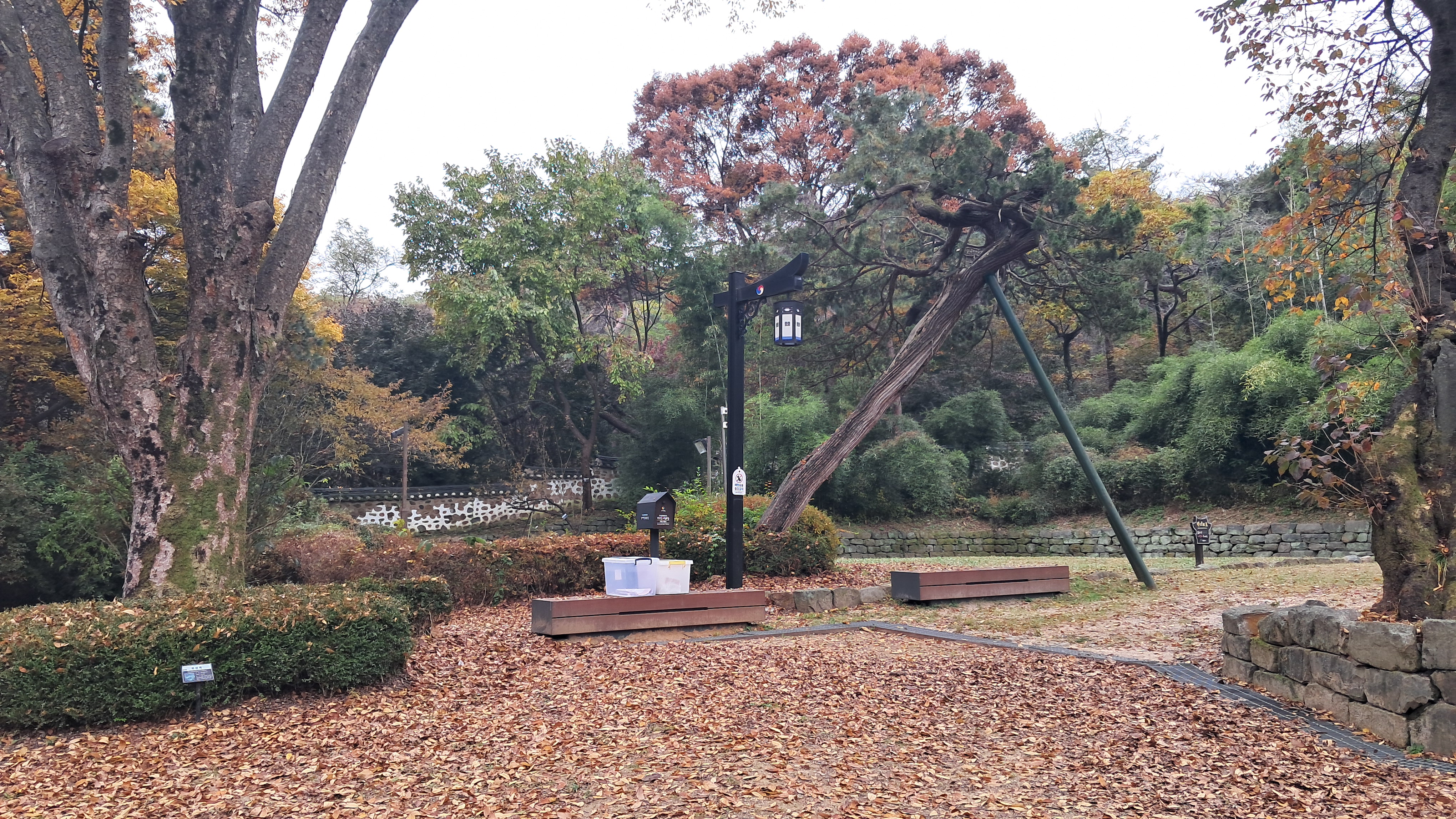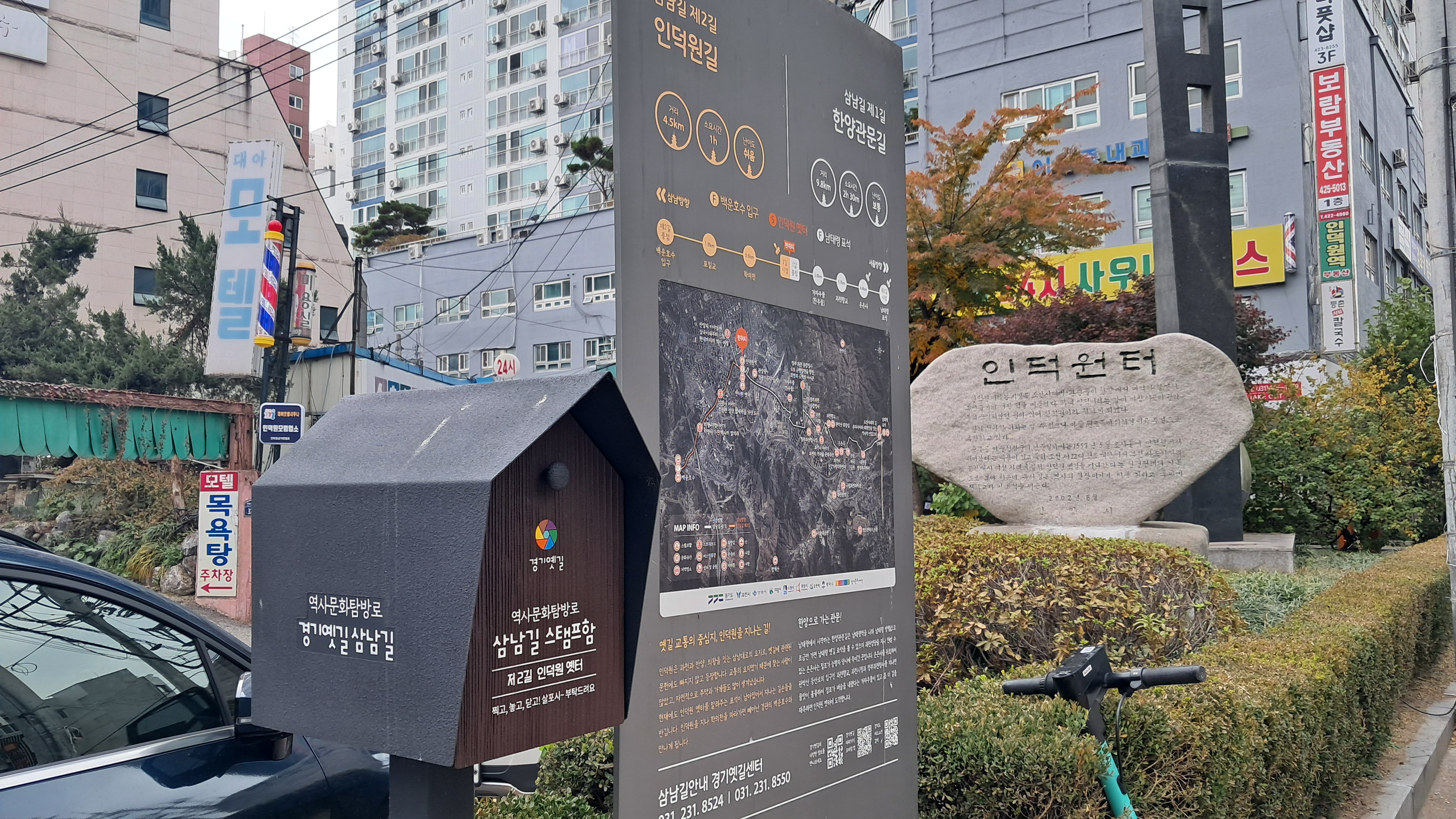 표지석 앞 길옆에는 인덕원 스탬프함이 설치되어 있습니다.