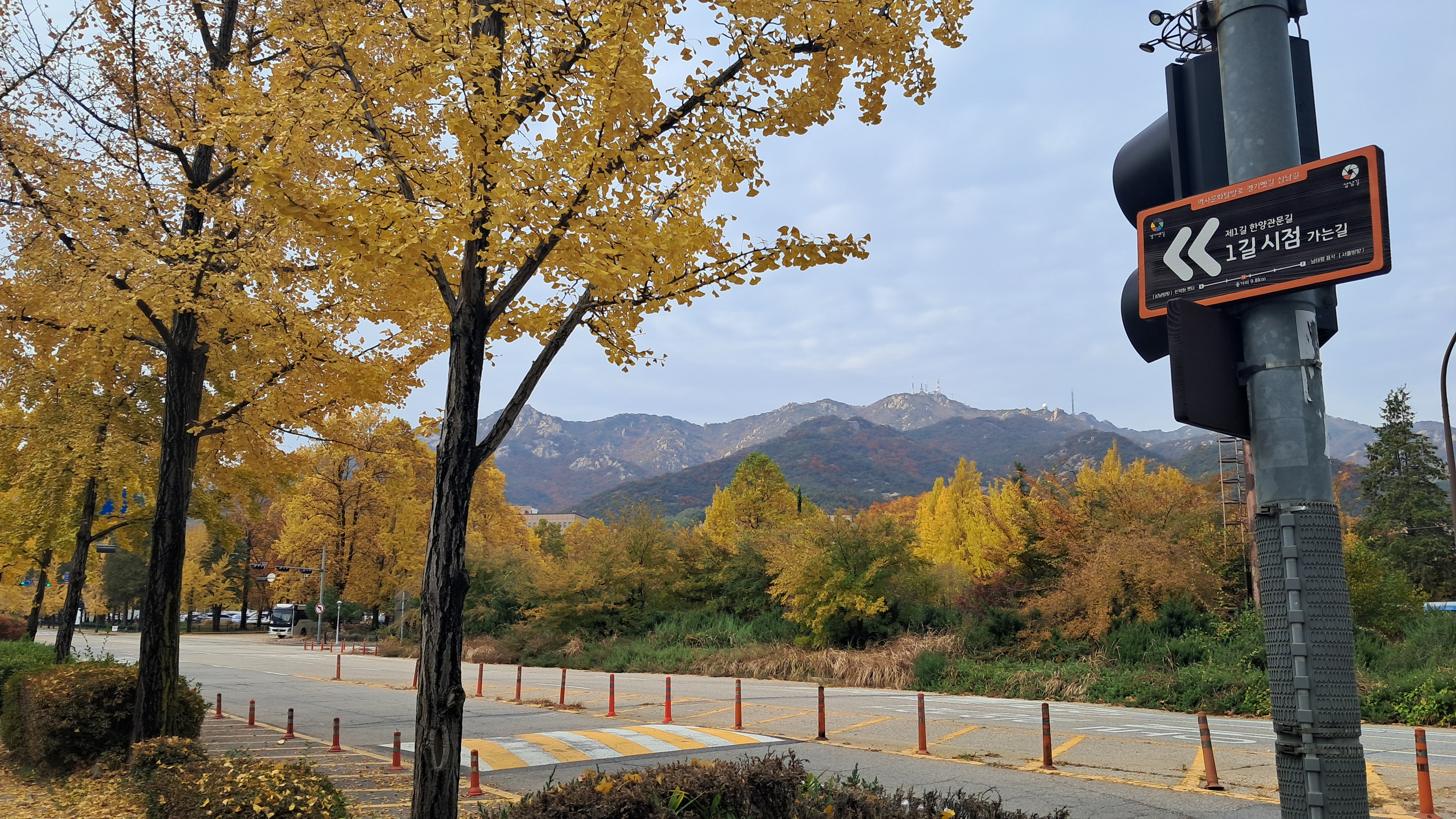 떨어진 낙엽의 바스락거리는 소리를 들으며 남태령 고갯길을 올라갑니다.