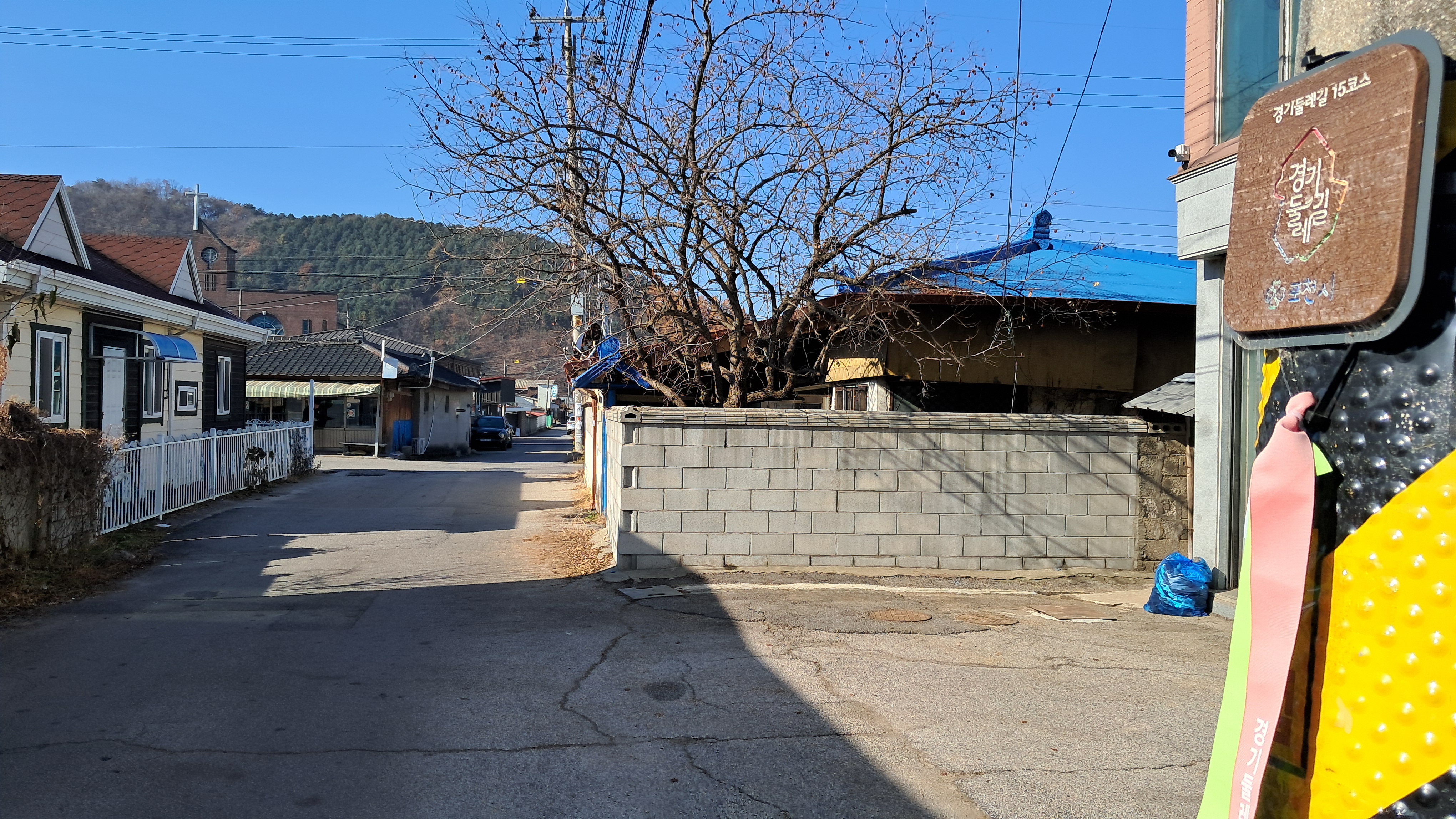 운천에서 산정호수로 가는 길에는 인도가 있어서 안전하게 이동할 수 있습니다.