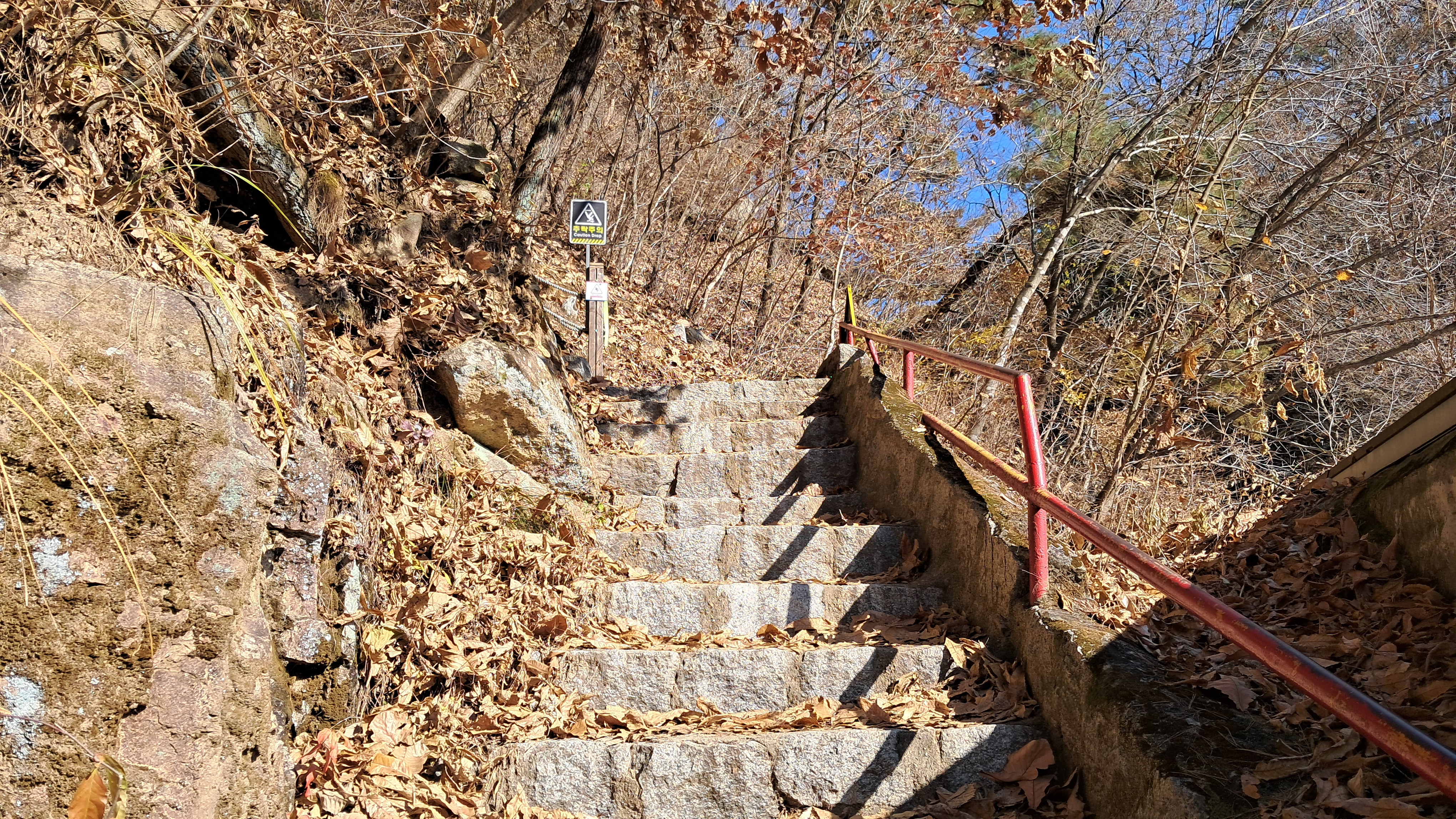 위쪽 다리 쪽에서 폭포수가 내려올 것 같은데 그쪽은 말라있습니다.