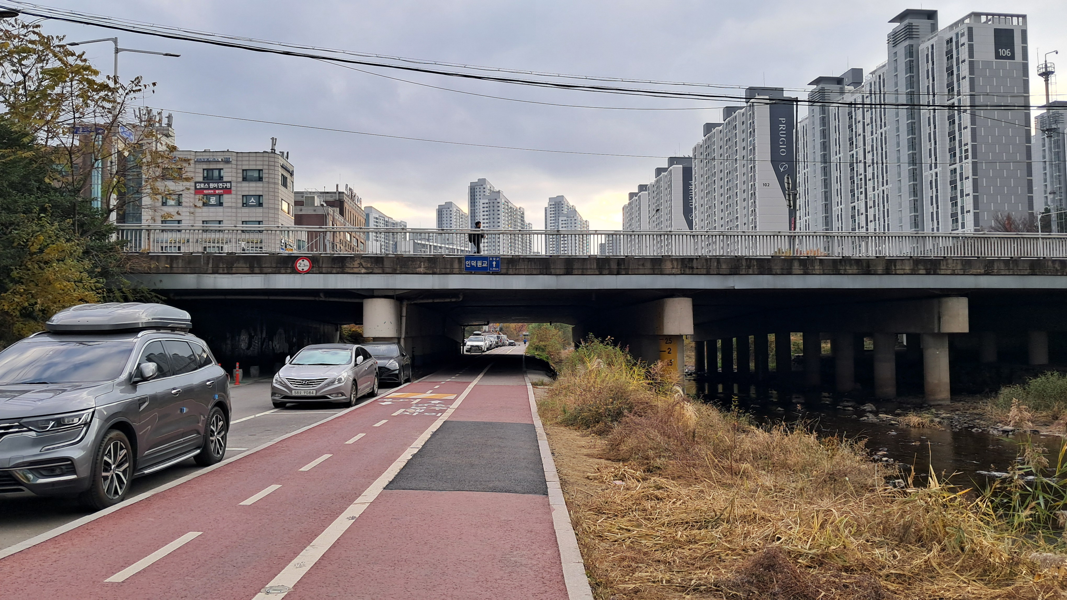 봉담-과천 간 도로 교각이 나오고 학의교를 건넙니다.