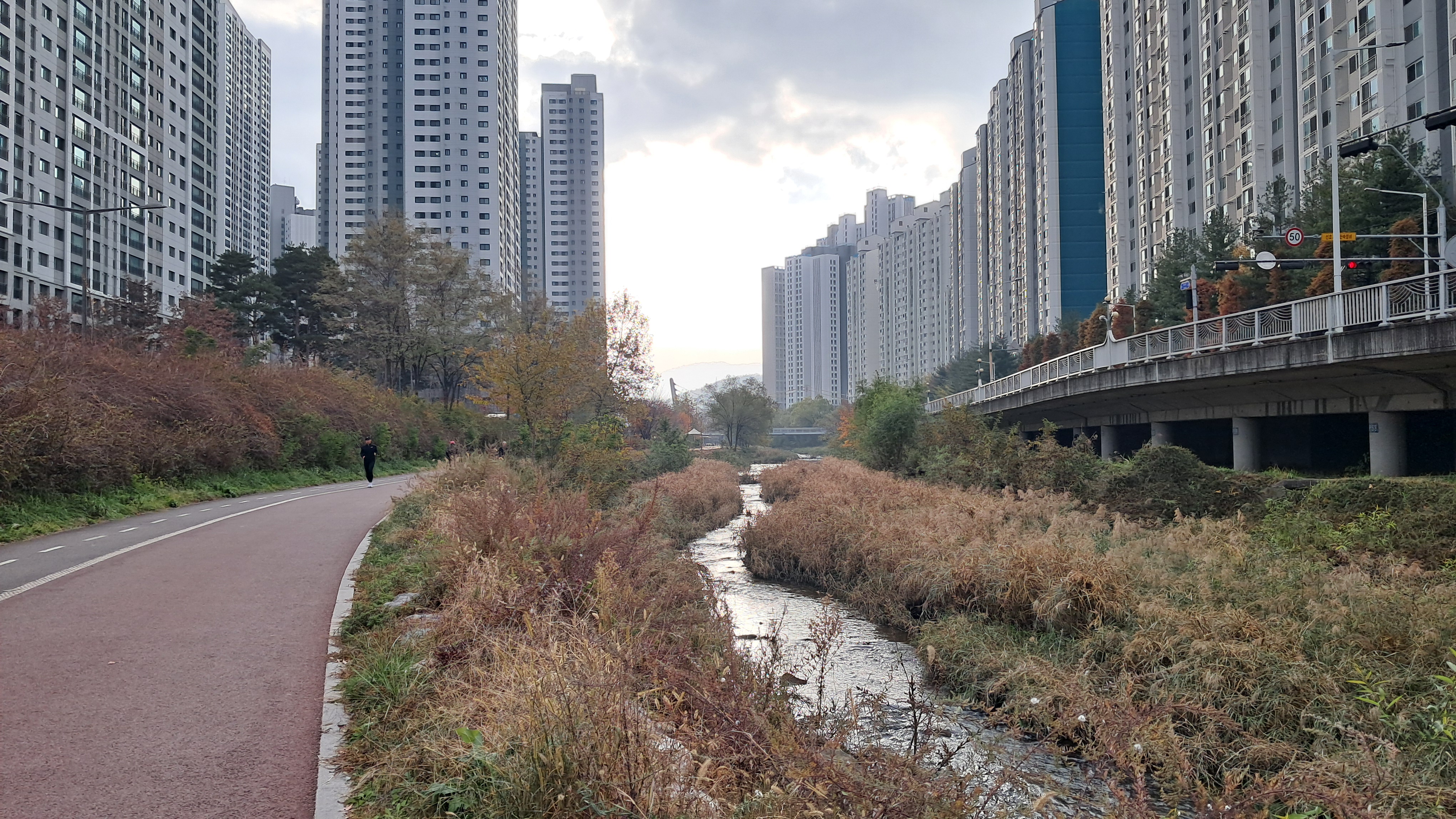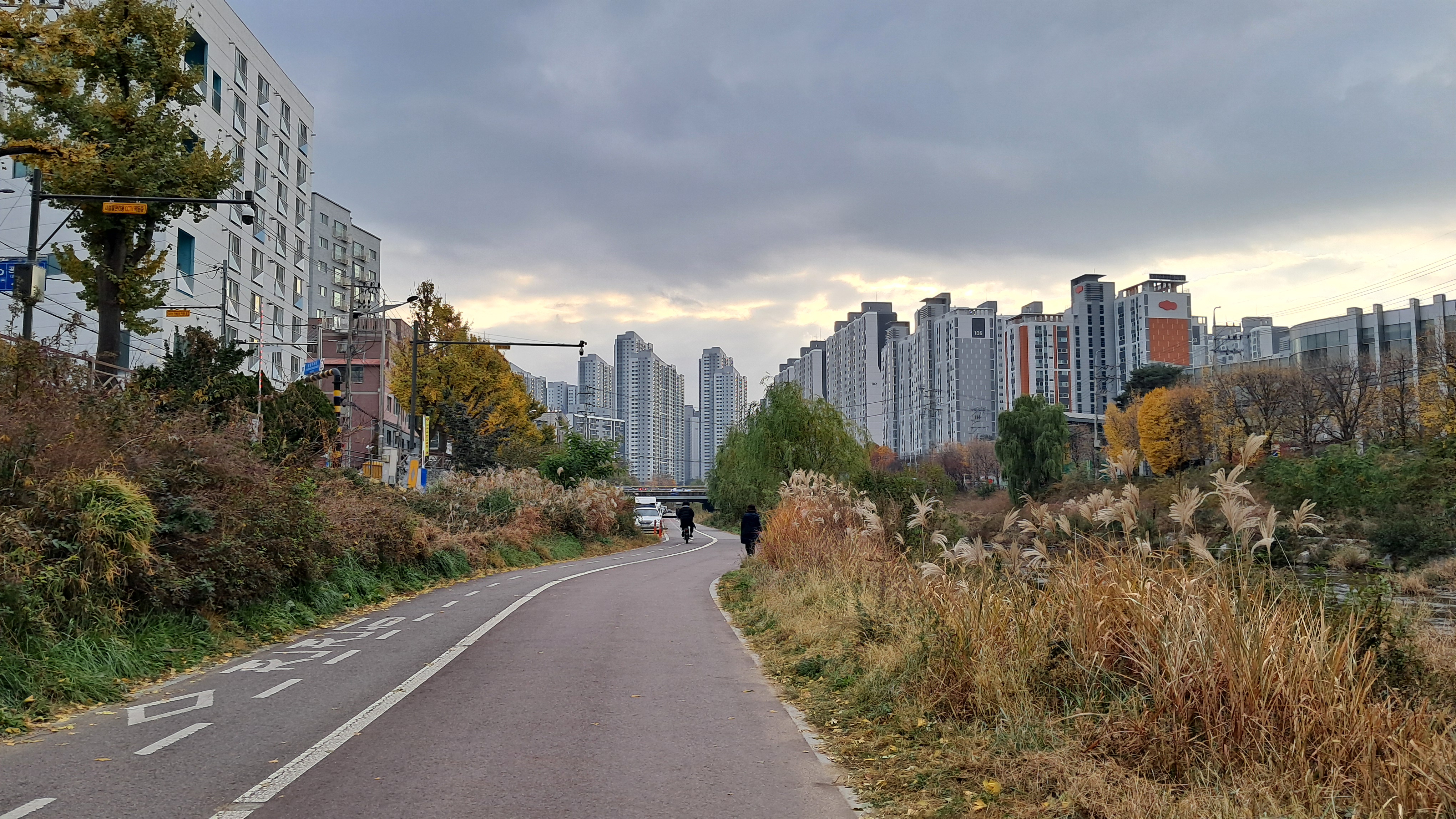 하천 도보길을 따라서 걸어가는 경로입니다.
