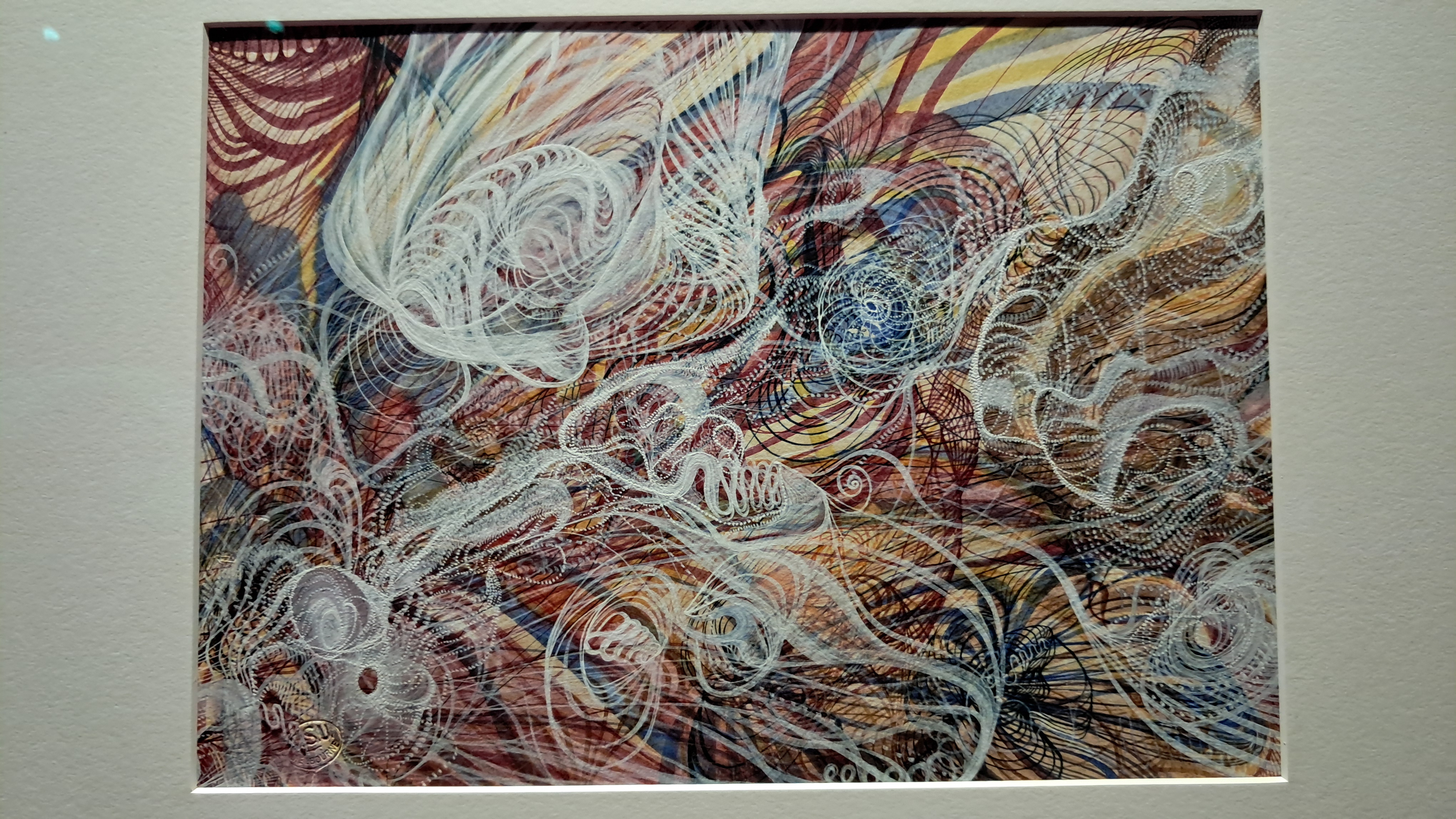통로를 통해 안쪽 전시공간으로 들어가면 복잡한 스케치 형태의 그림이 여러 점 있습니다.