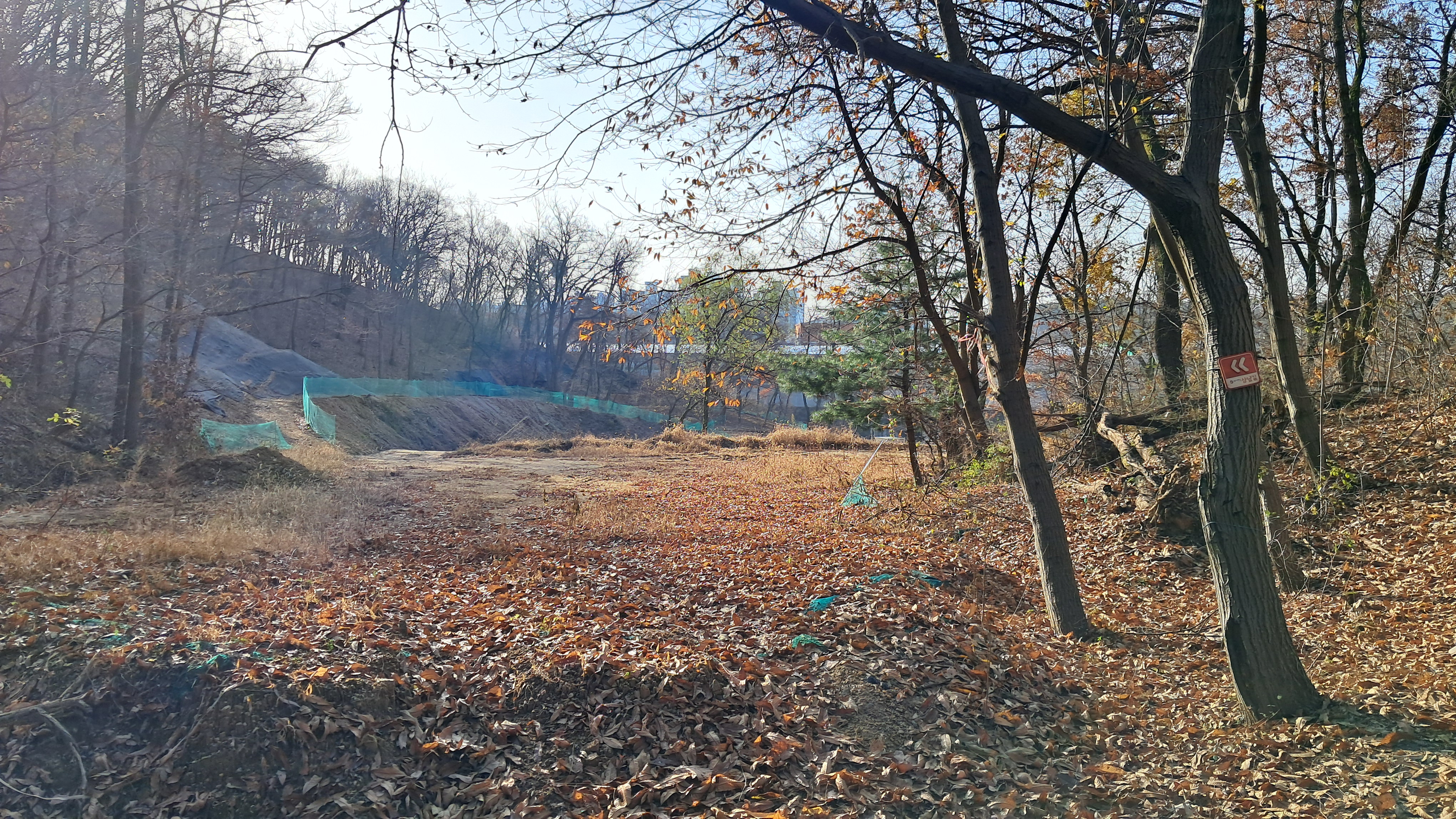 공사현장에는 몇 갈래의 길이 있고 앞쪽으로 보이는 도로는 영동고속도로입니다.