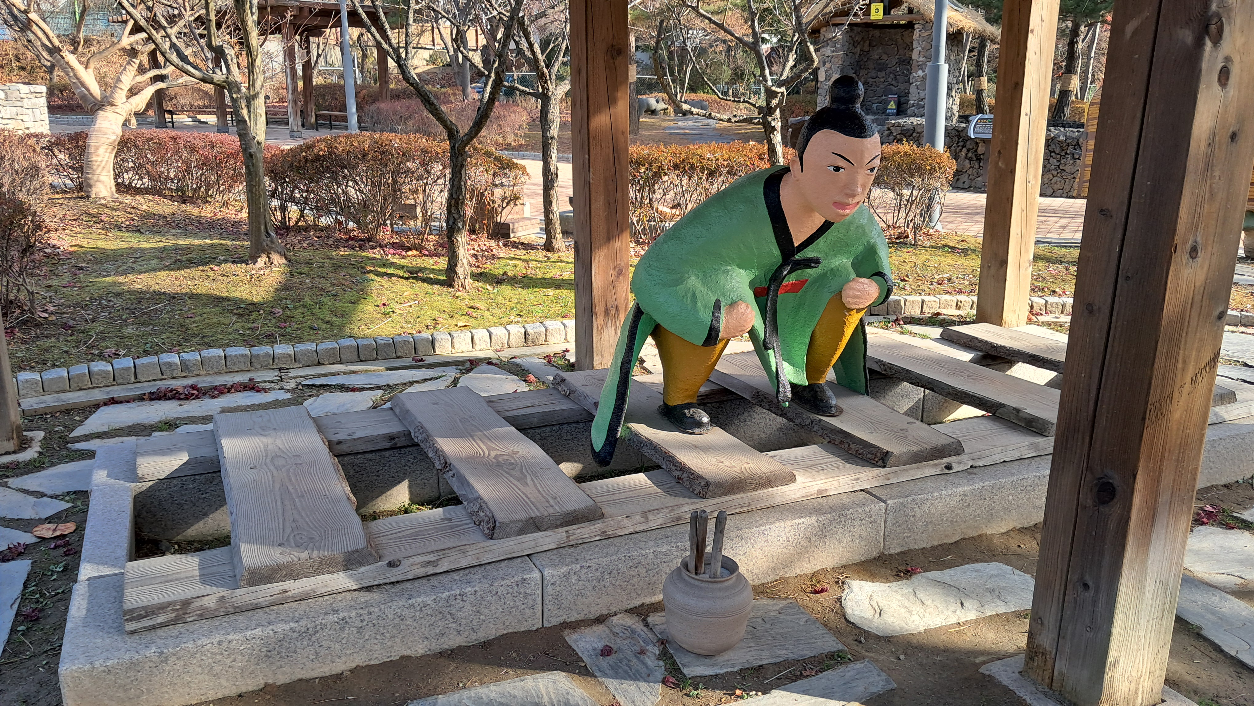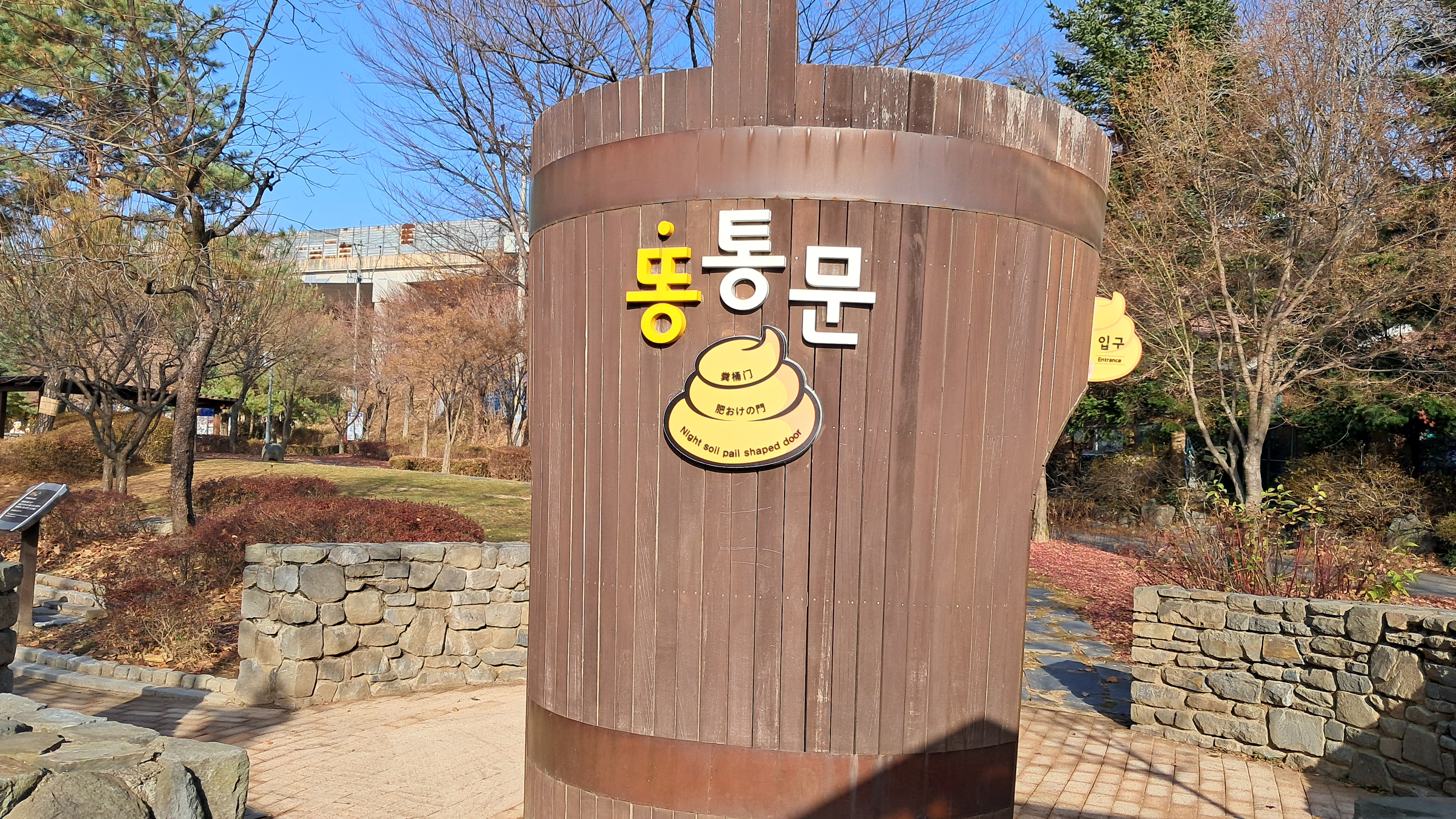 요즘 사람들은 잘 모를 똥통 형태의 문을 먼저 통과합니다.