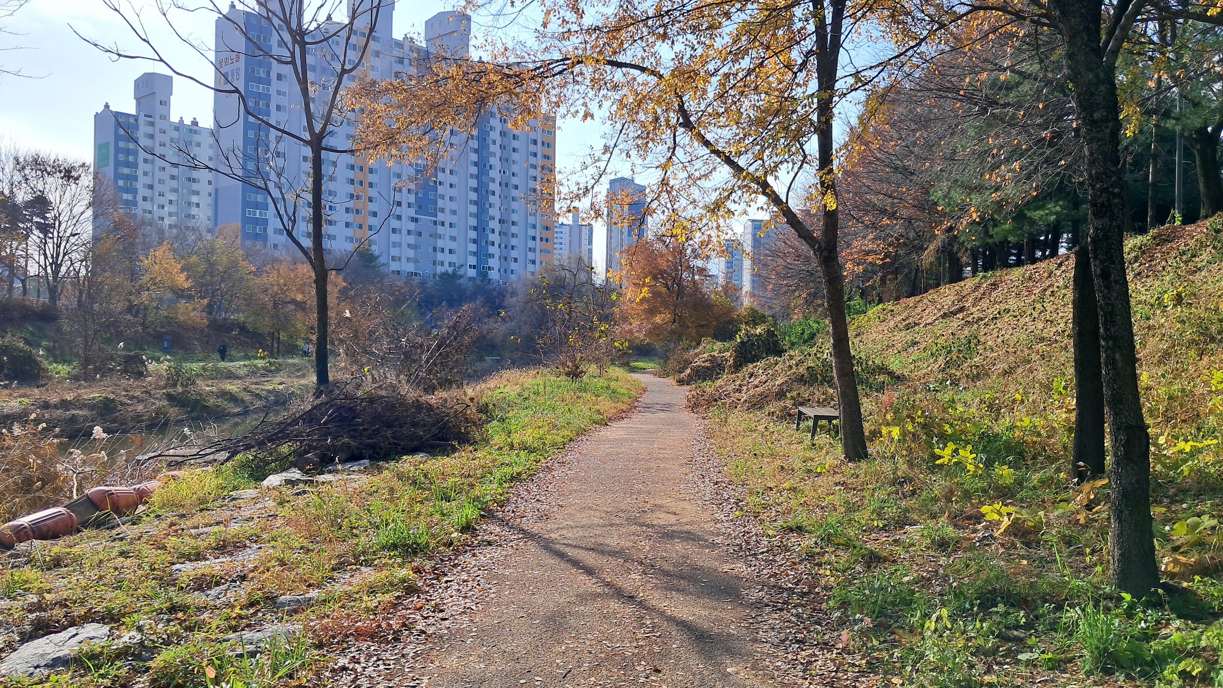 작은 하천 옆으로 산책길이 잘 조성되어 있습니다.