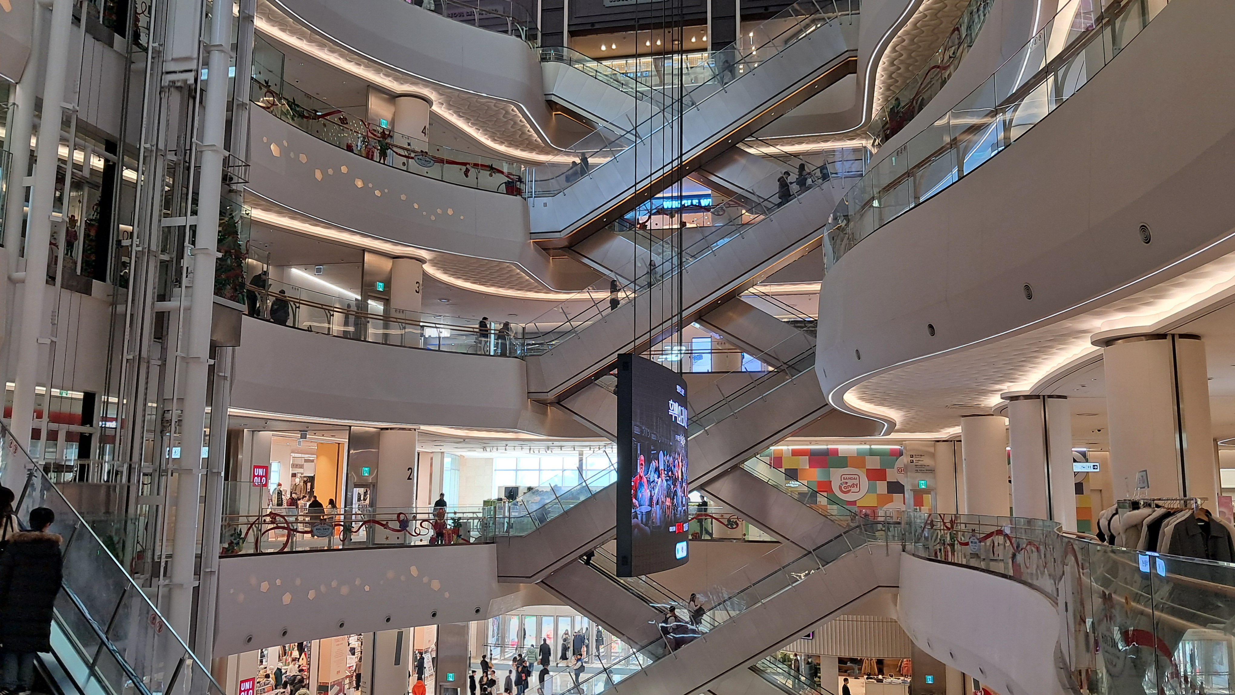 복합쇼핑몰에는 휴일 이른 시간에도 이미 많은 사람들이 방문하고 있습니다.
