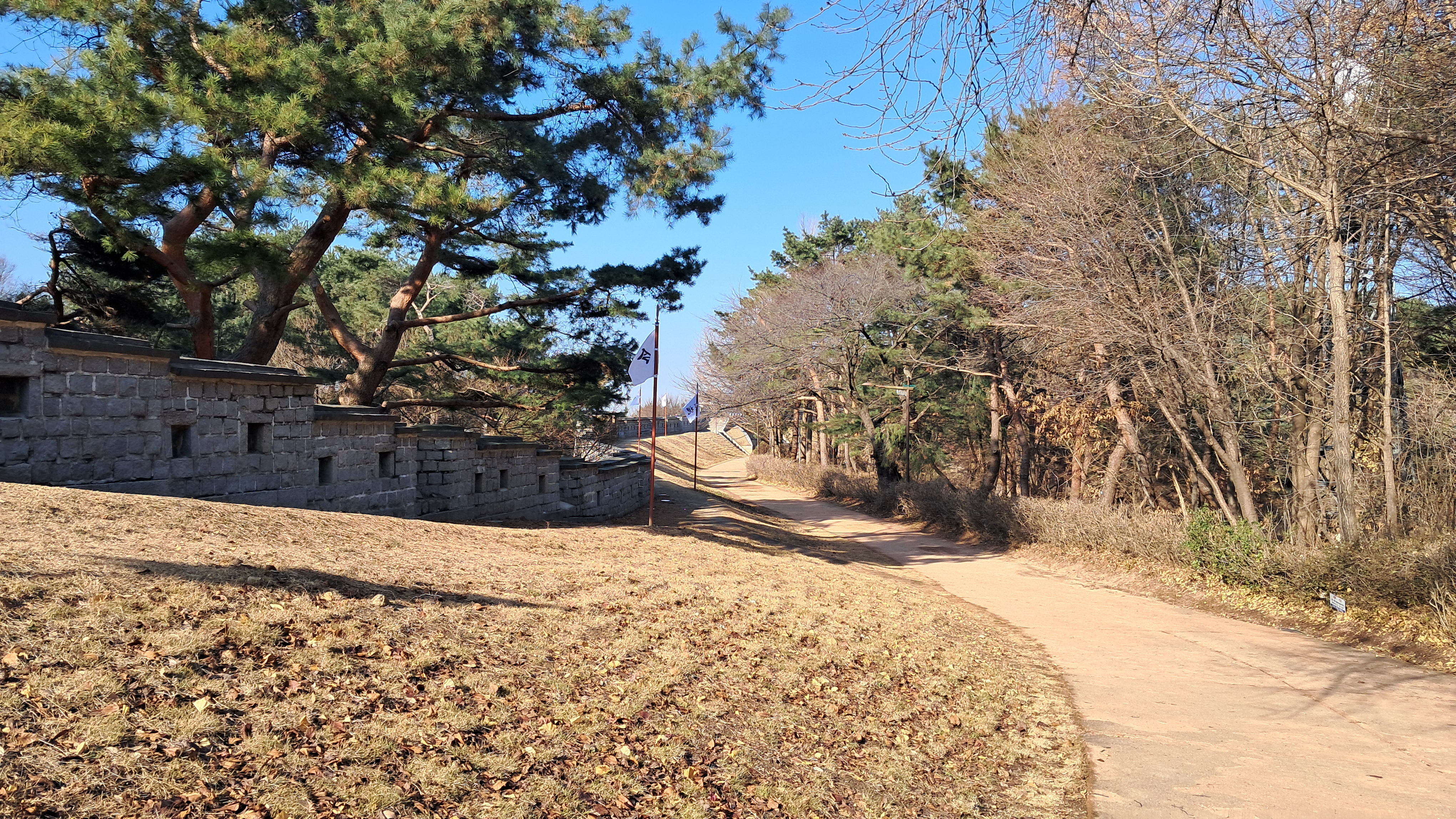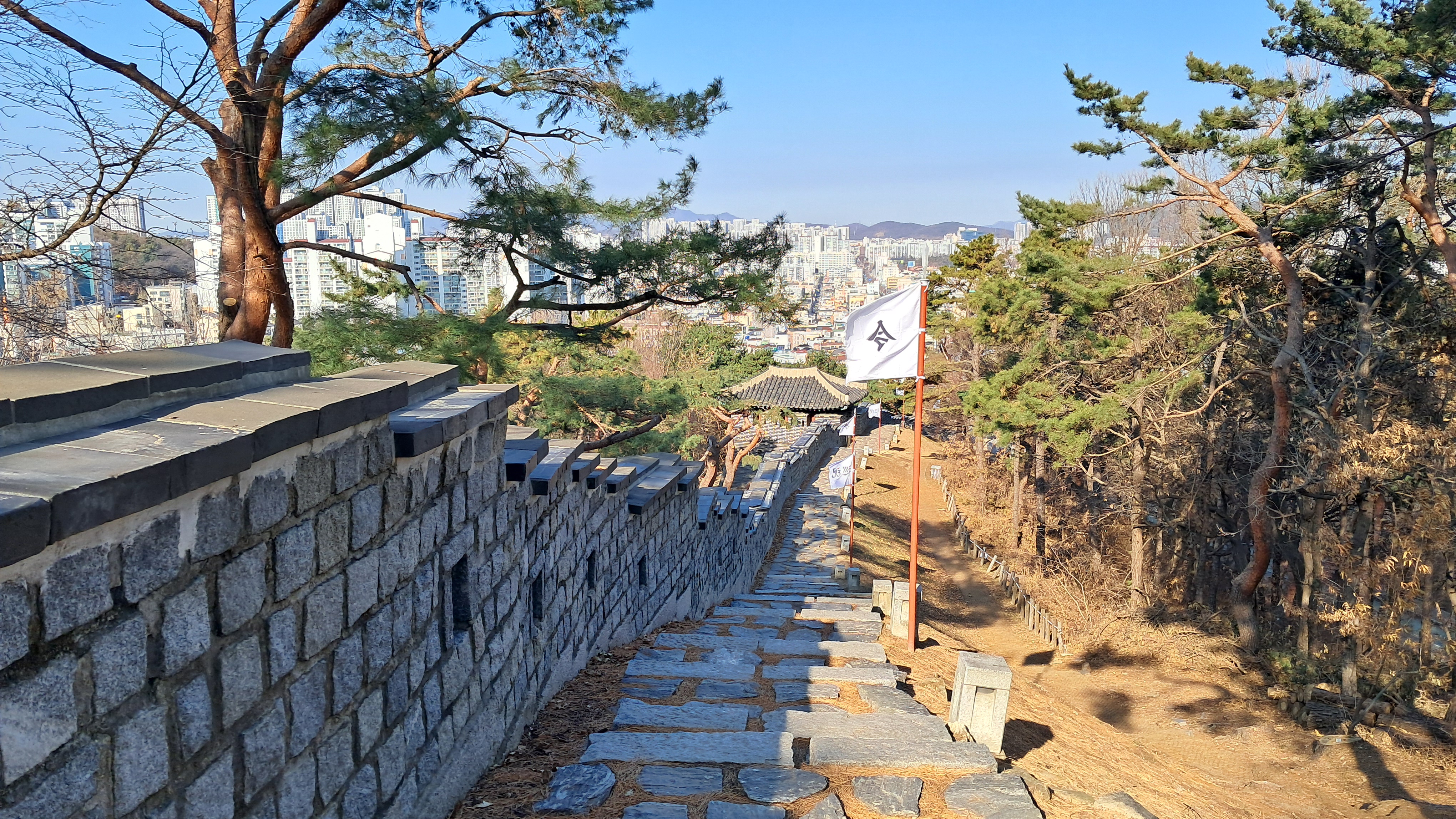 조금 힘든 오르막길은 끝나고 이제 평이한 성곽길을 따라 걷습니다.