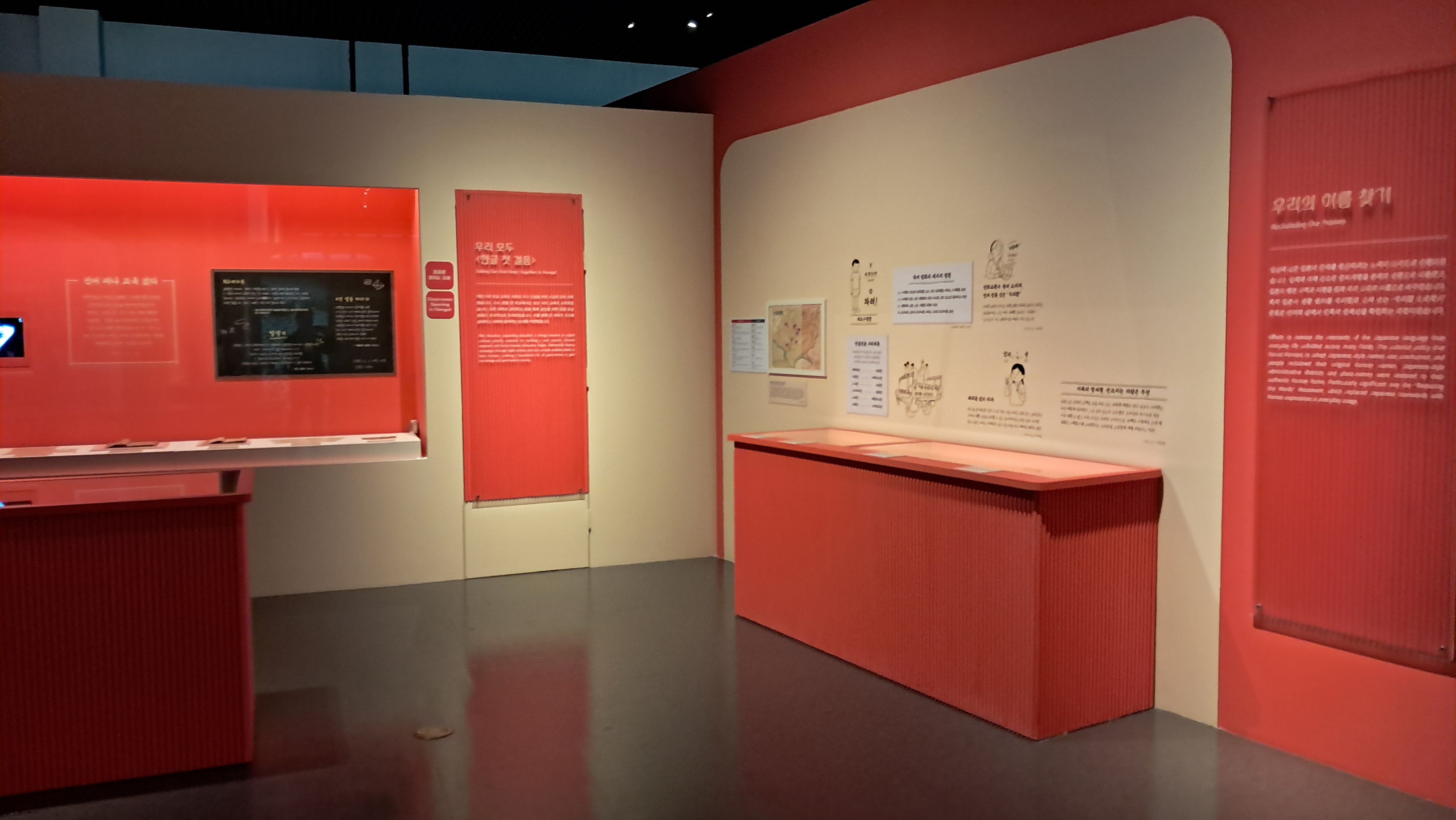 윤동주의 별 헤는 밤 등 한글로 쓰인 여러 책자가 전시되어 있습니다.