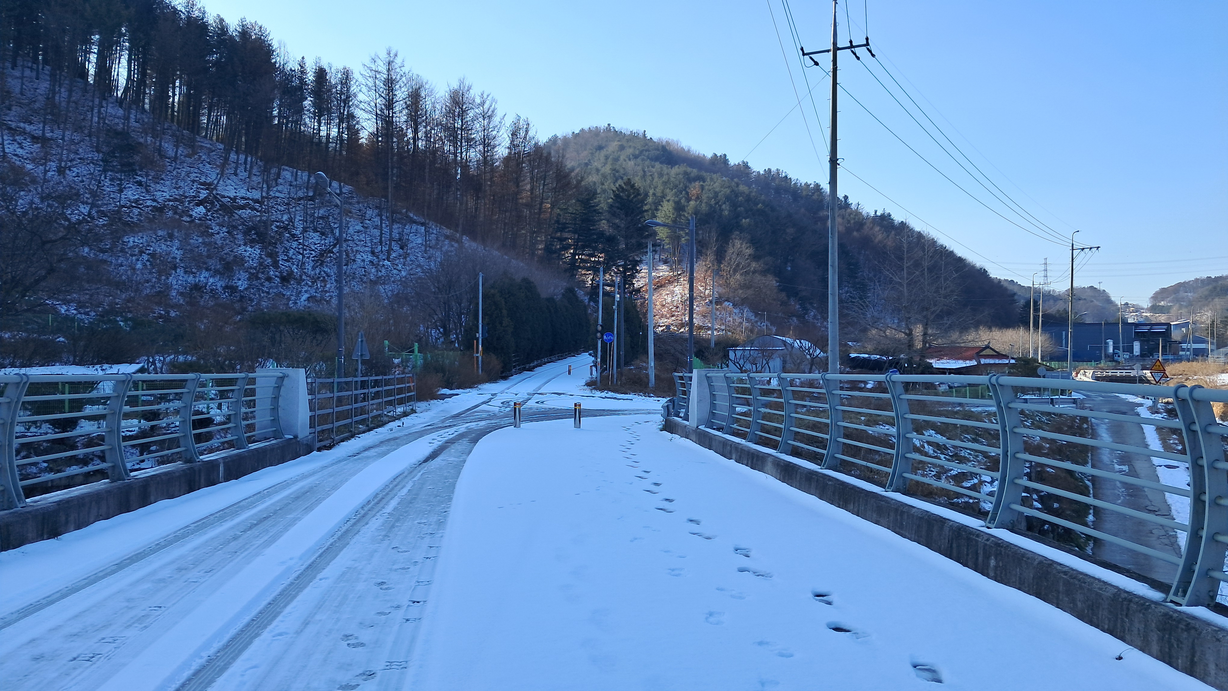 다행히도 눈 내린 길이 치워져 있고 넓습니다.