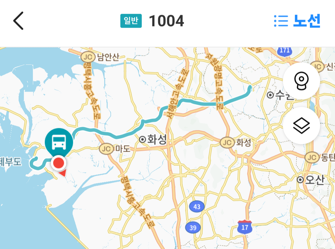 버스는 수원을 벗어나 화성시내를 통과해서 종점에 도착했습니다.
