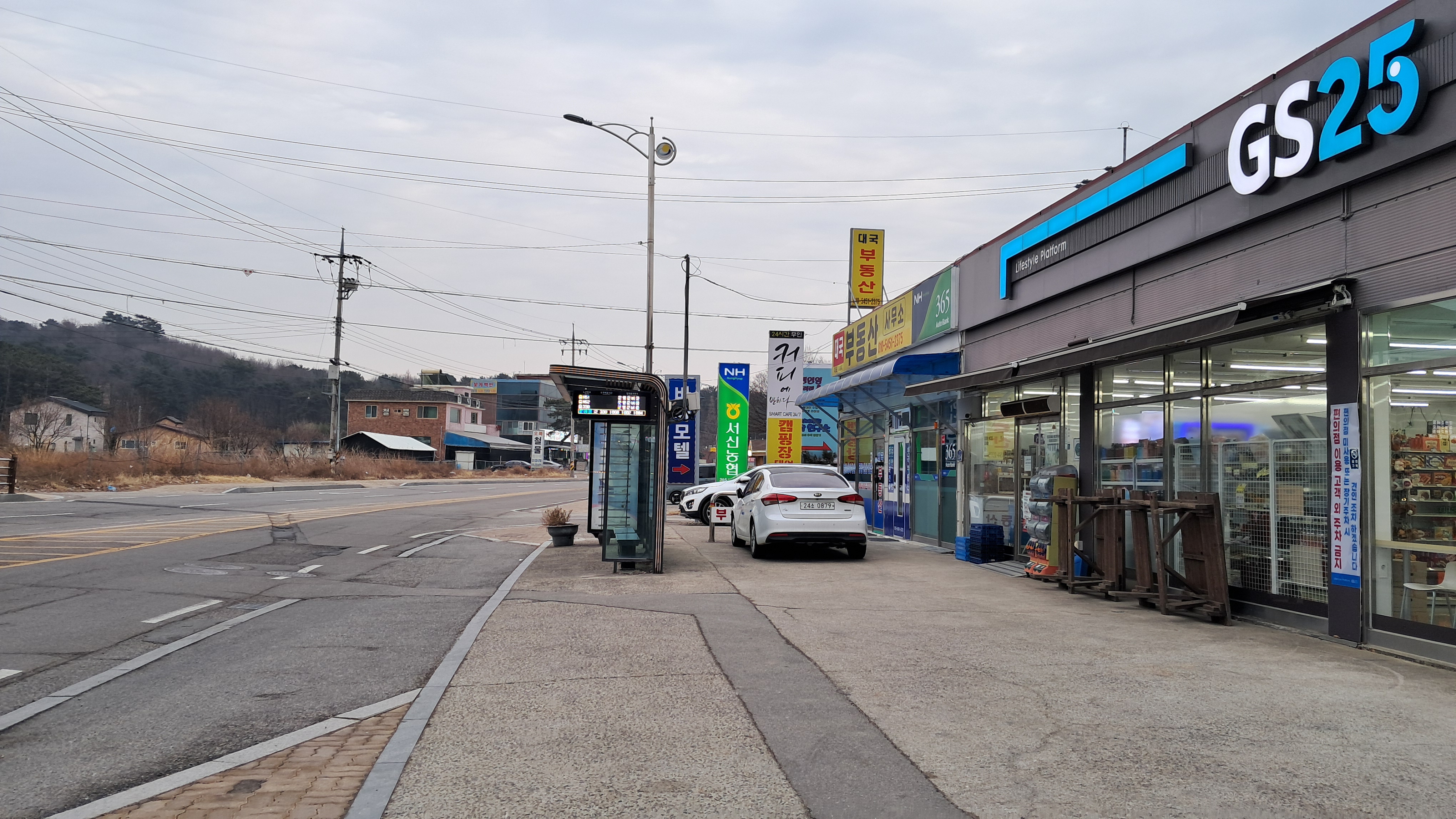 버스는 조금뒤에 올 때 탔던 400번 버스 노선과 동일한 도로를 달립니다.