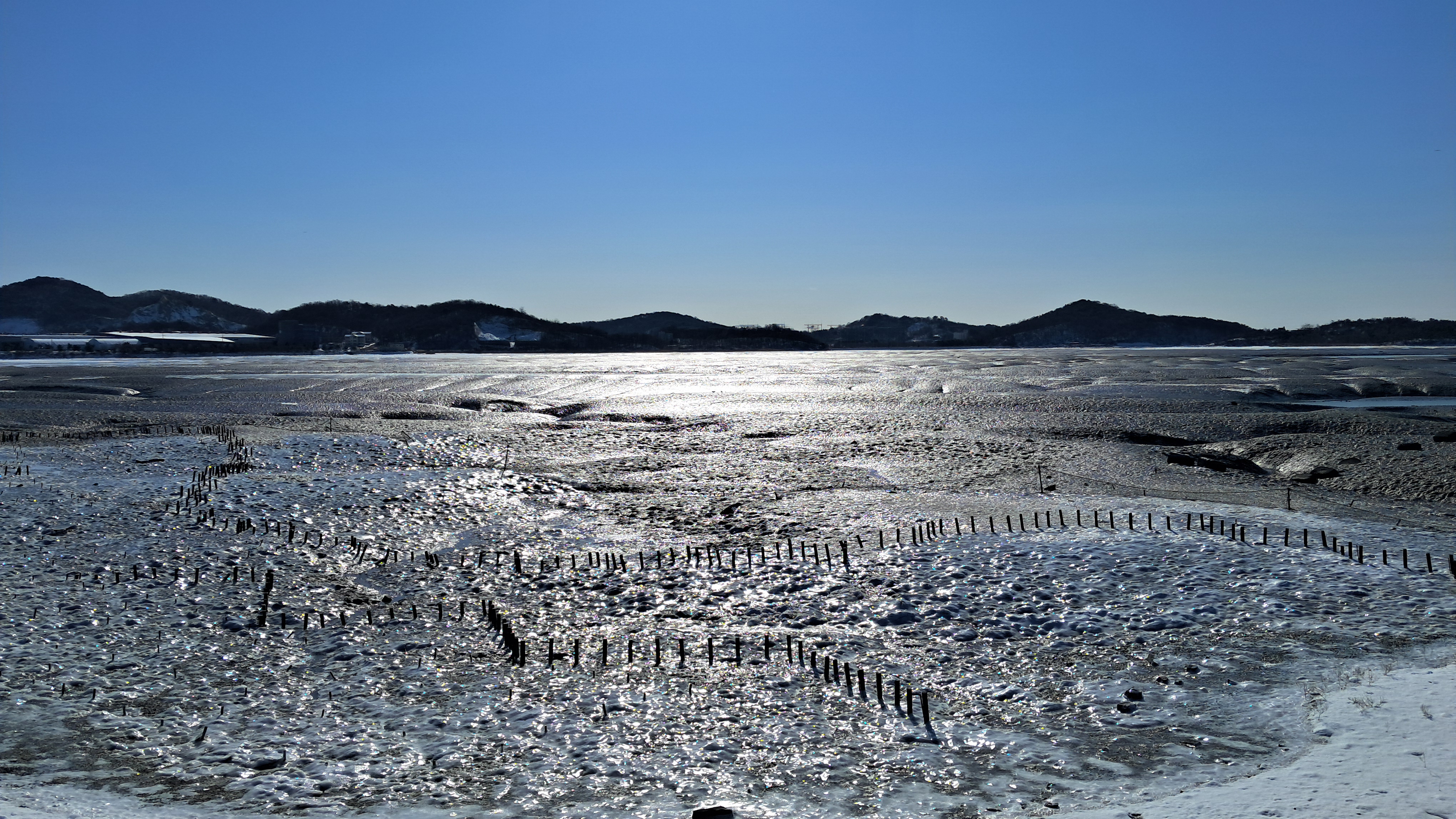 태양빛에 비친 갯벌이 밝게 비칩니다.