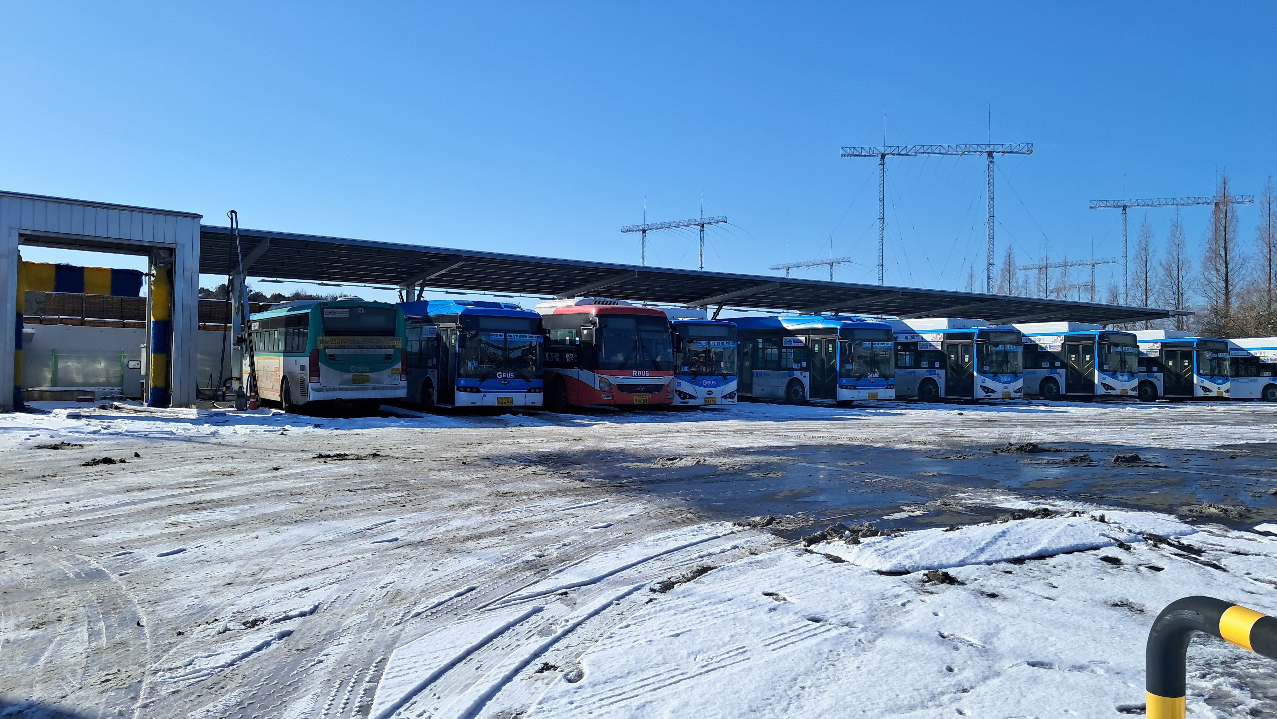 제부도 입구 근처까지 다니는 버스들의 차고지를 통과합니다.