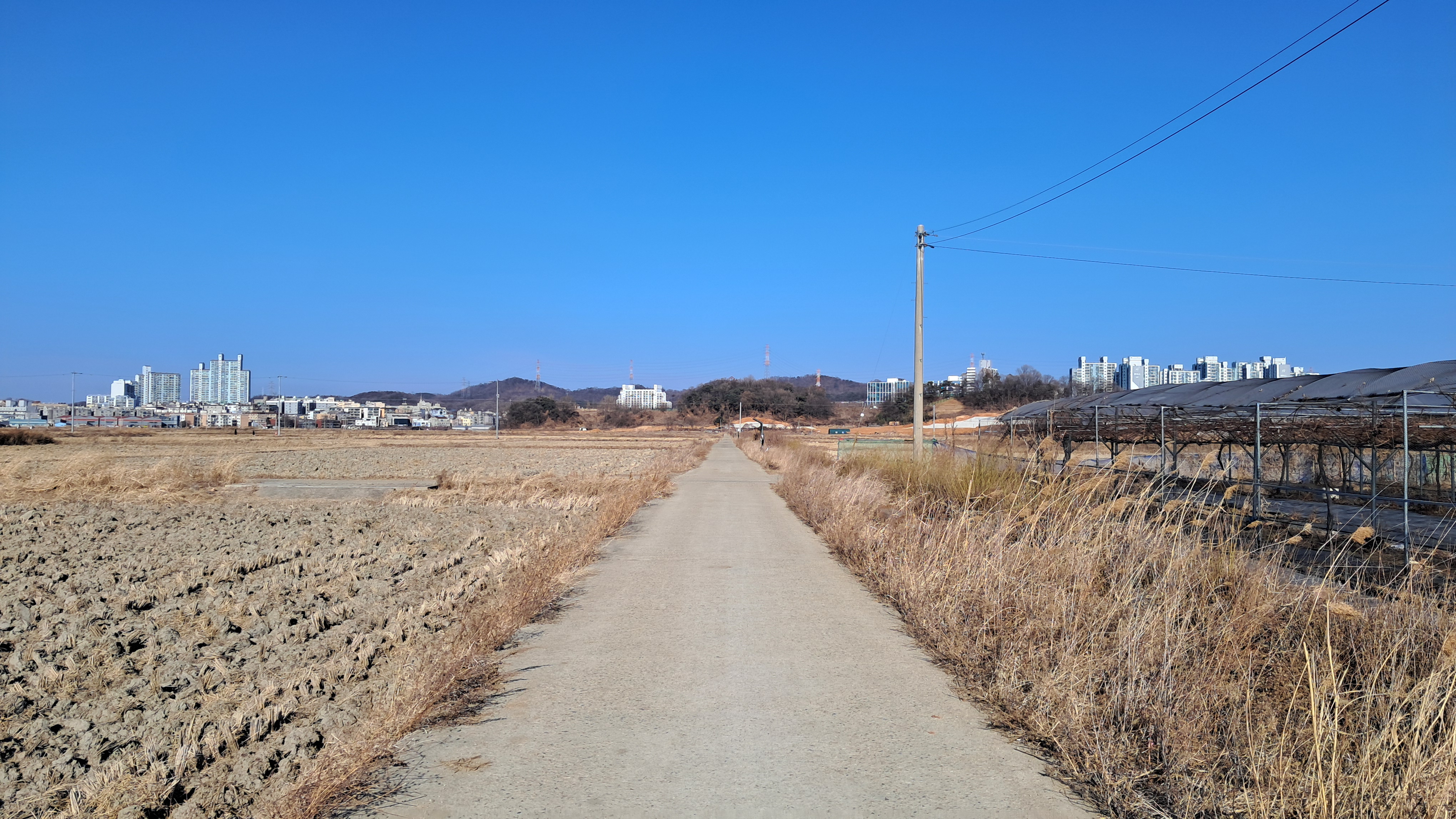 아파트촌 옆 도로를 걸어서 다시 우측으로 방향을 돌립니다.