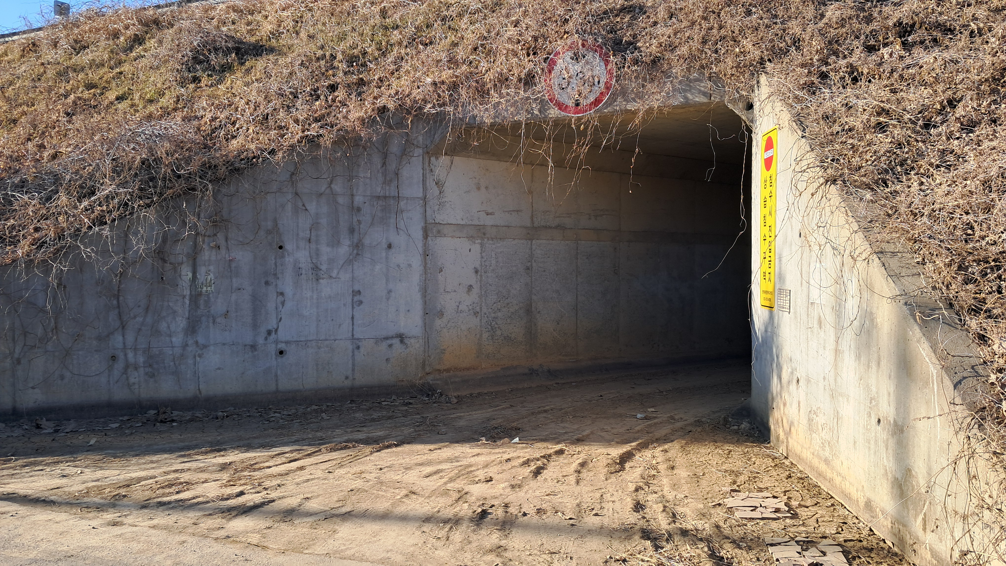 평야 위를 쌩쌩 달리는 도로 아래 굴다리를 통과해서 너머로 이동합니다.