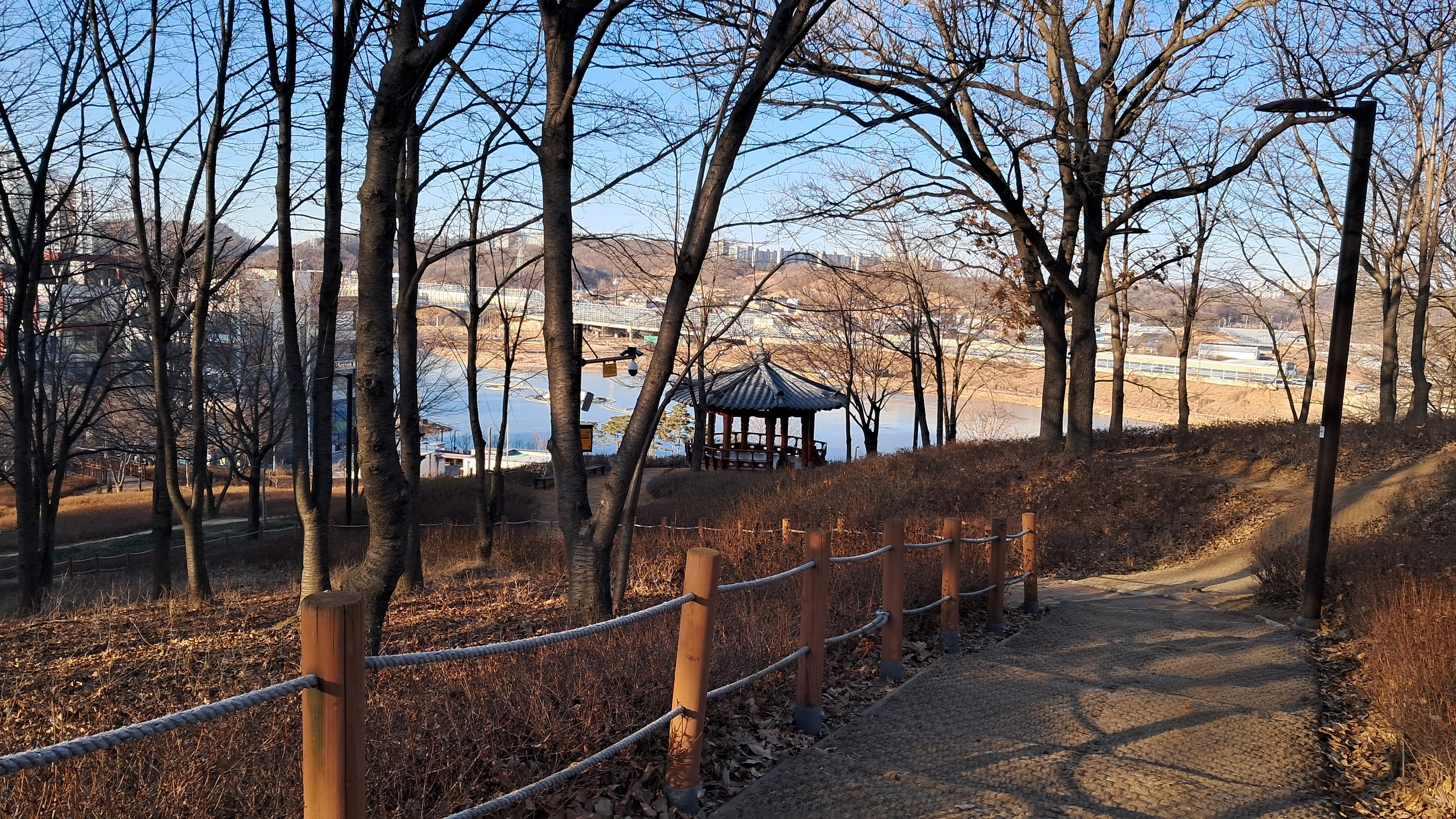 추운 날씨에도 산책과 운동을 하러 나온 사람들이 보입니다.