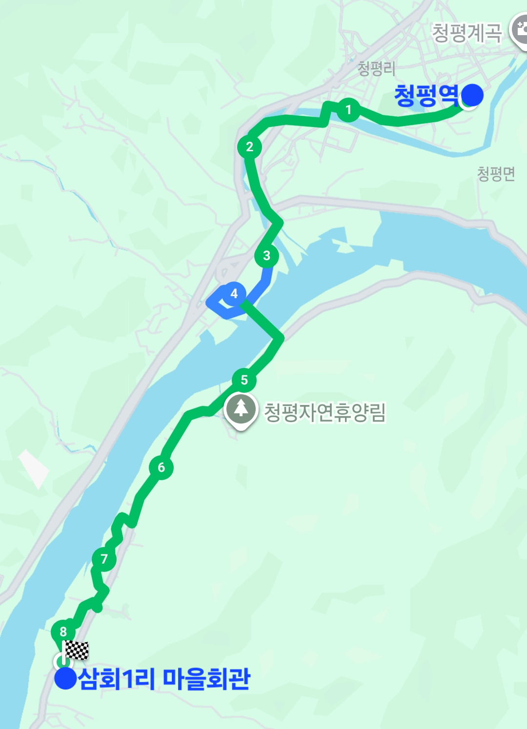 이 코스의 시작 시 청평역 화장실을 미리 다녀오는 것을 추천합니다.