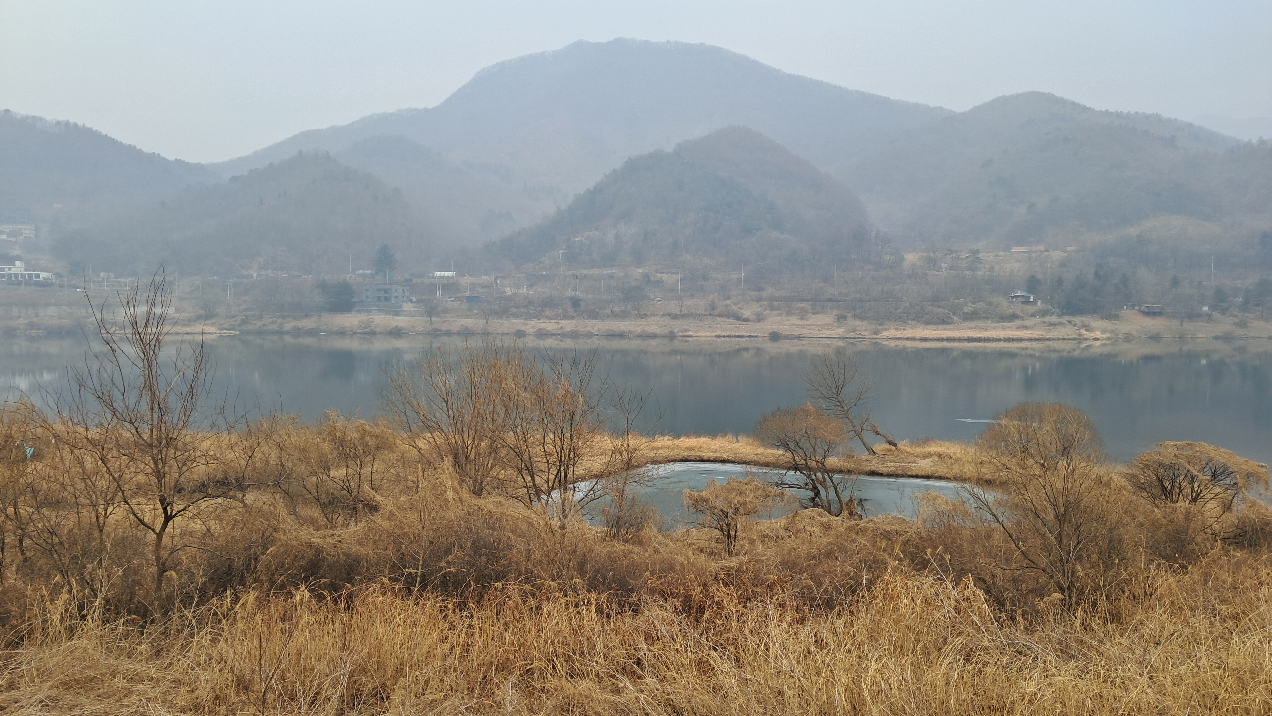 오늘은 미세먼지가 짙은 흐린 날이라서 바로 앞의 호명산도 흐릿하게 보입니다.