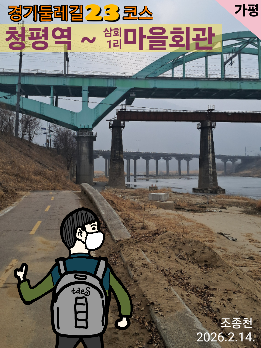 경기둘레길을 구간구간 랜덤하게 나누어서 걷고 있는데 해가 바뀌고 처음으로 가평구간을 걸었습니다.