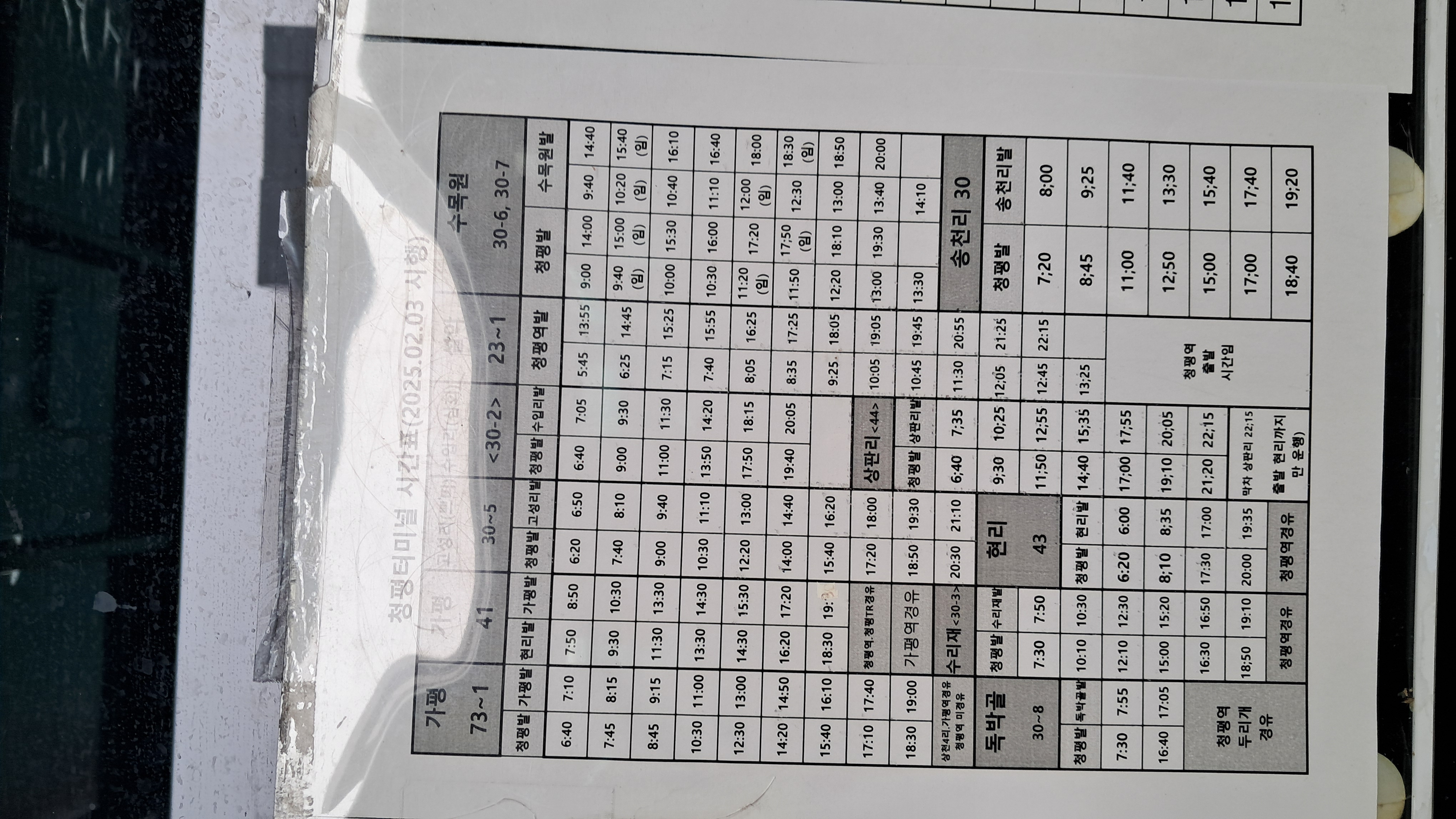 경기둘레길 24코스의 시작점인 삼회 1리 마을회관 방면 30-2번 버스 배차시간표가 중요합니다.