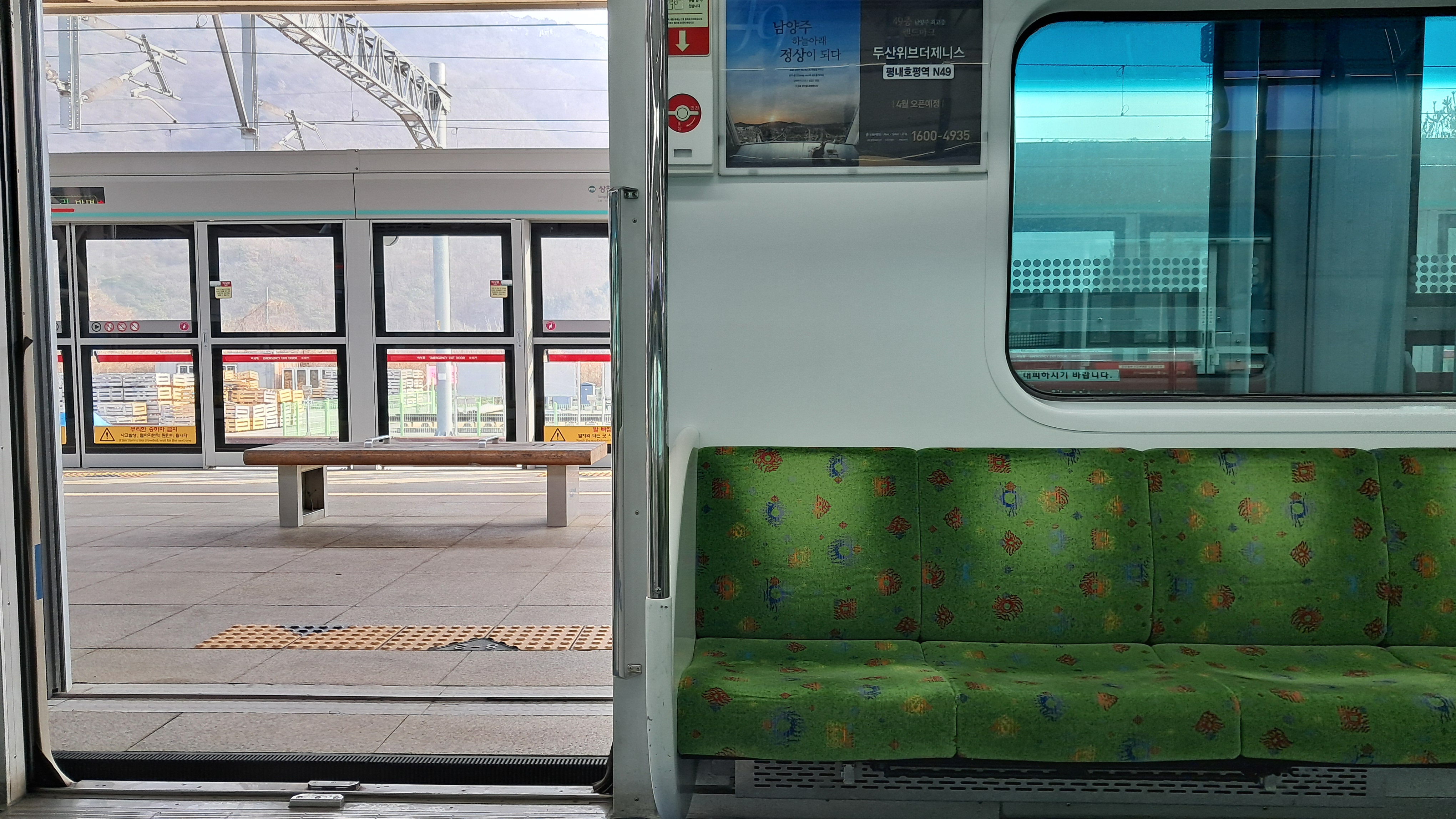 휴식터 의자에 자리를 잡고 새 청평역을 들어가고 빠져나오는 전동열차를 바라보며 오늘의 여행 그림타이틀을 만듭니다.
