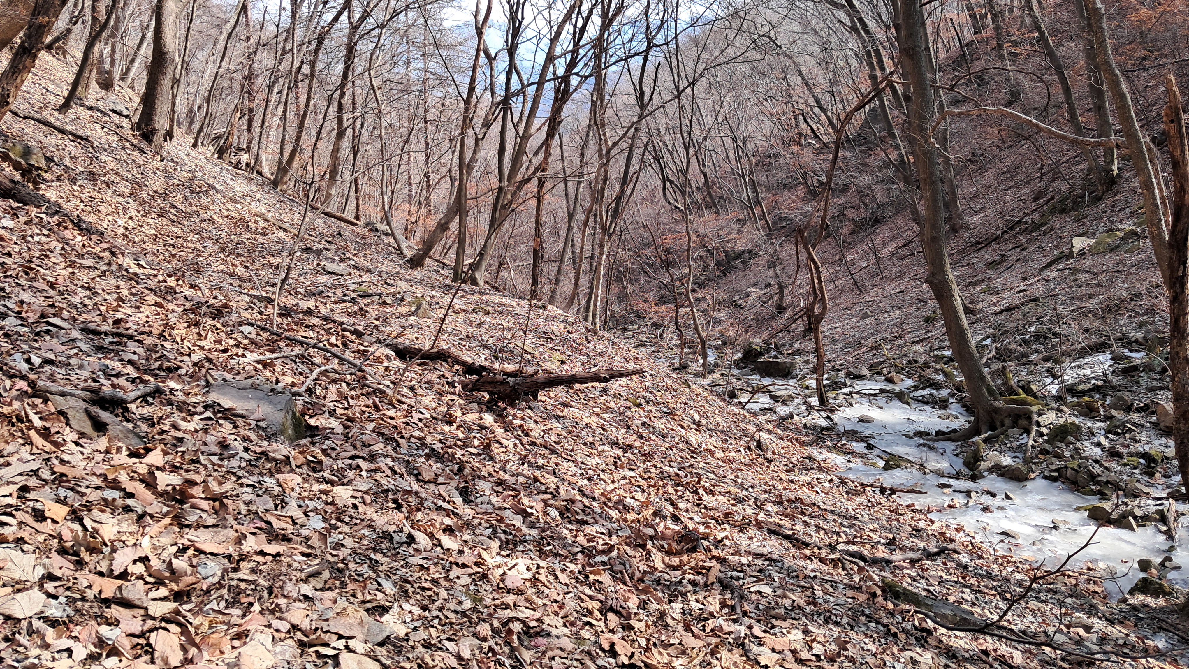 다행히 급경사의 골짜기를 잘 내려왔습니다.