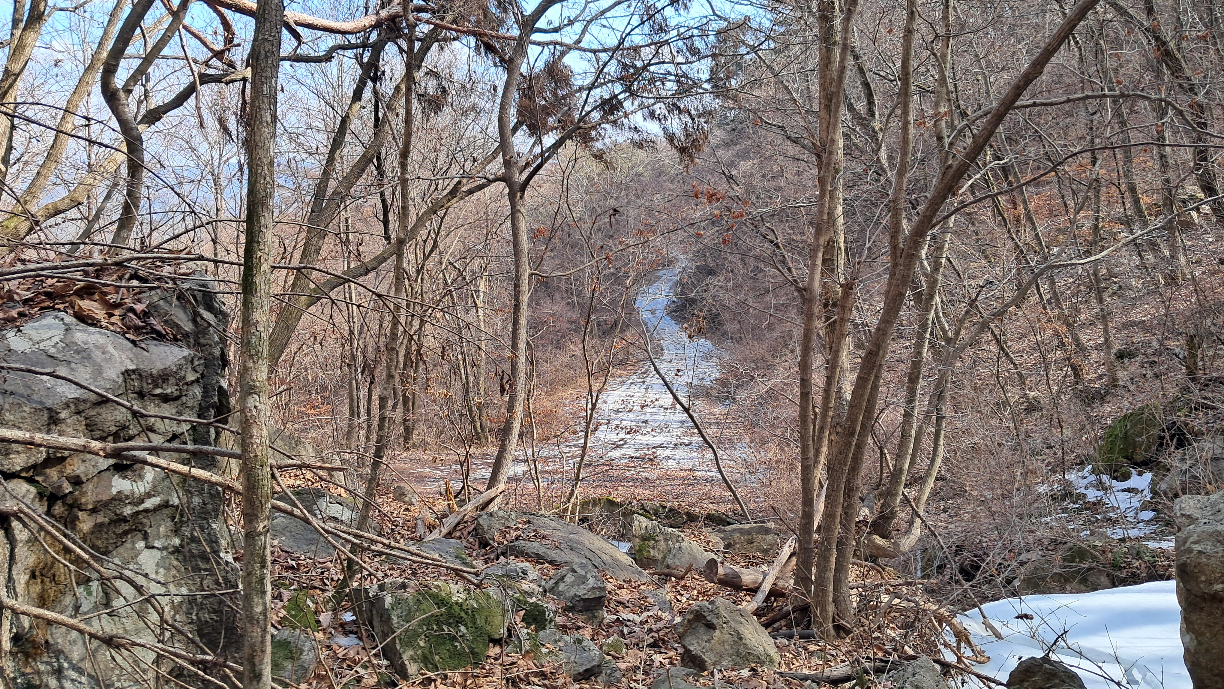 겨울철이라서 시야가 확보되고 장애물이 많지 않아 걷기에는 수월한 편입니다.