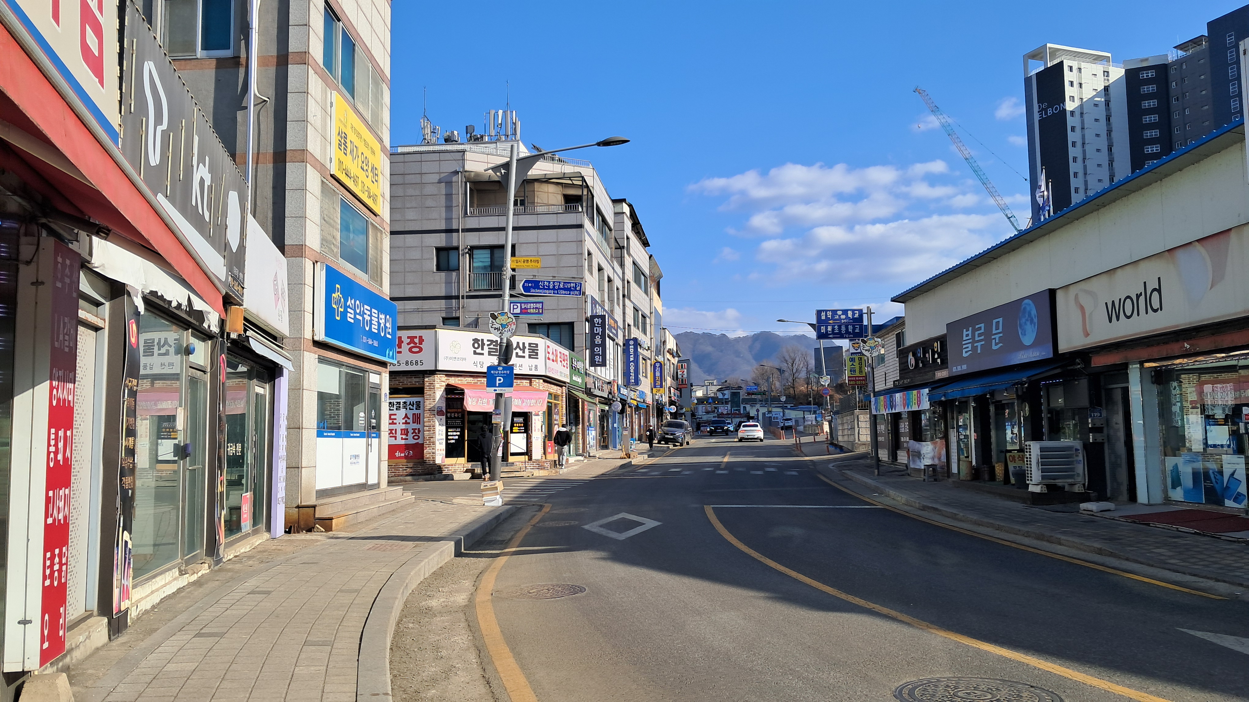 생각보다 도로는 작은데 자동차가 많이 지나갑니다.