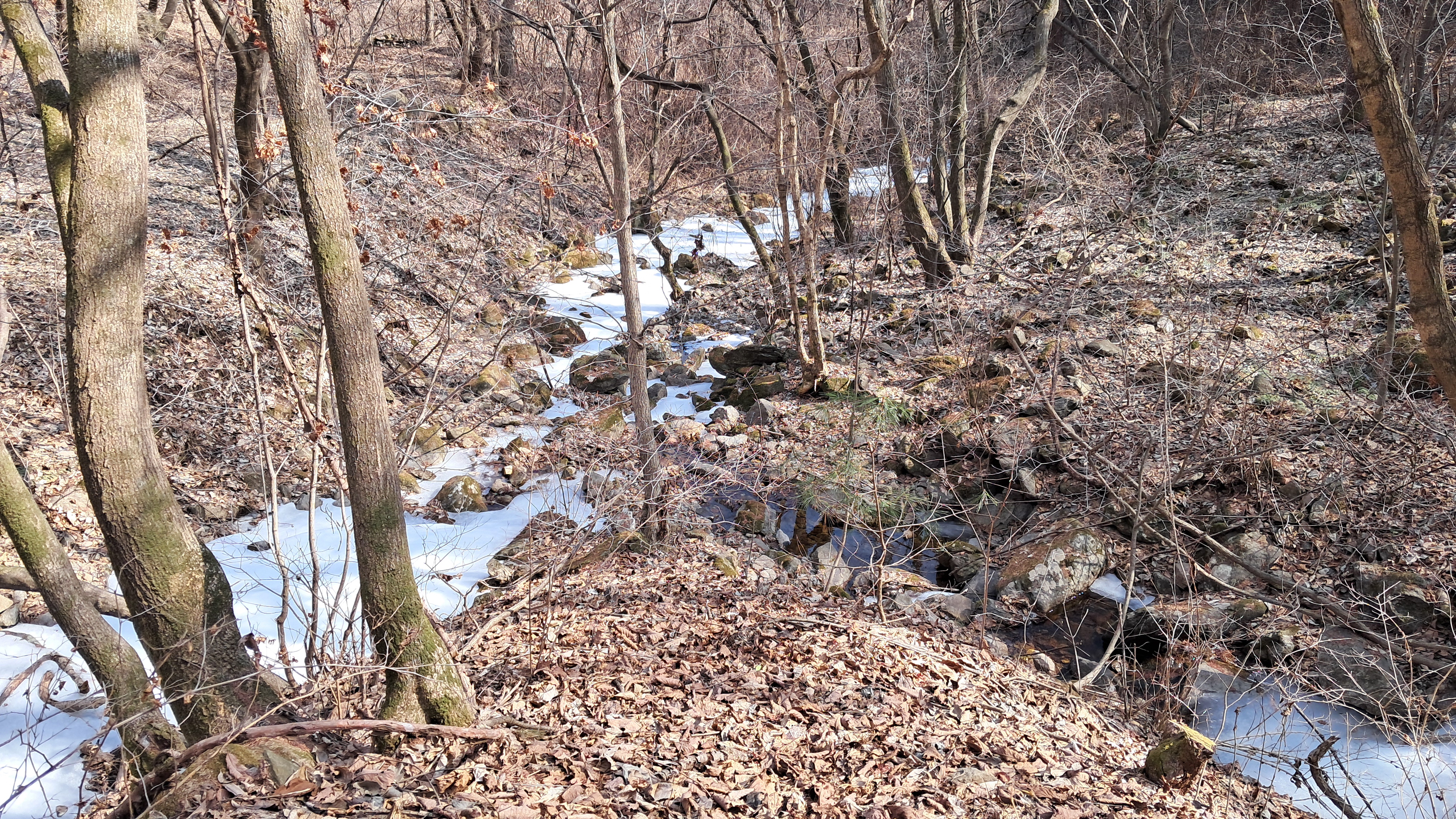 그렇게 한동안 길이 없는 계곡을 따라 내려갑니다.