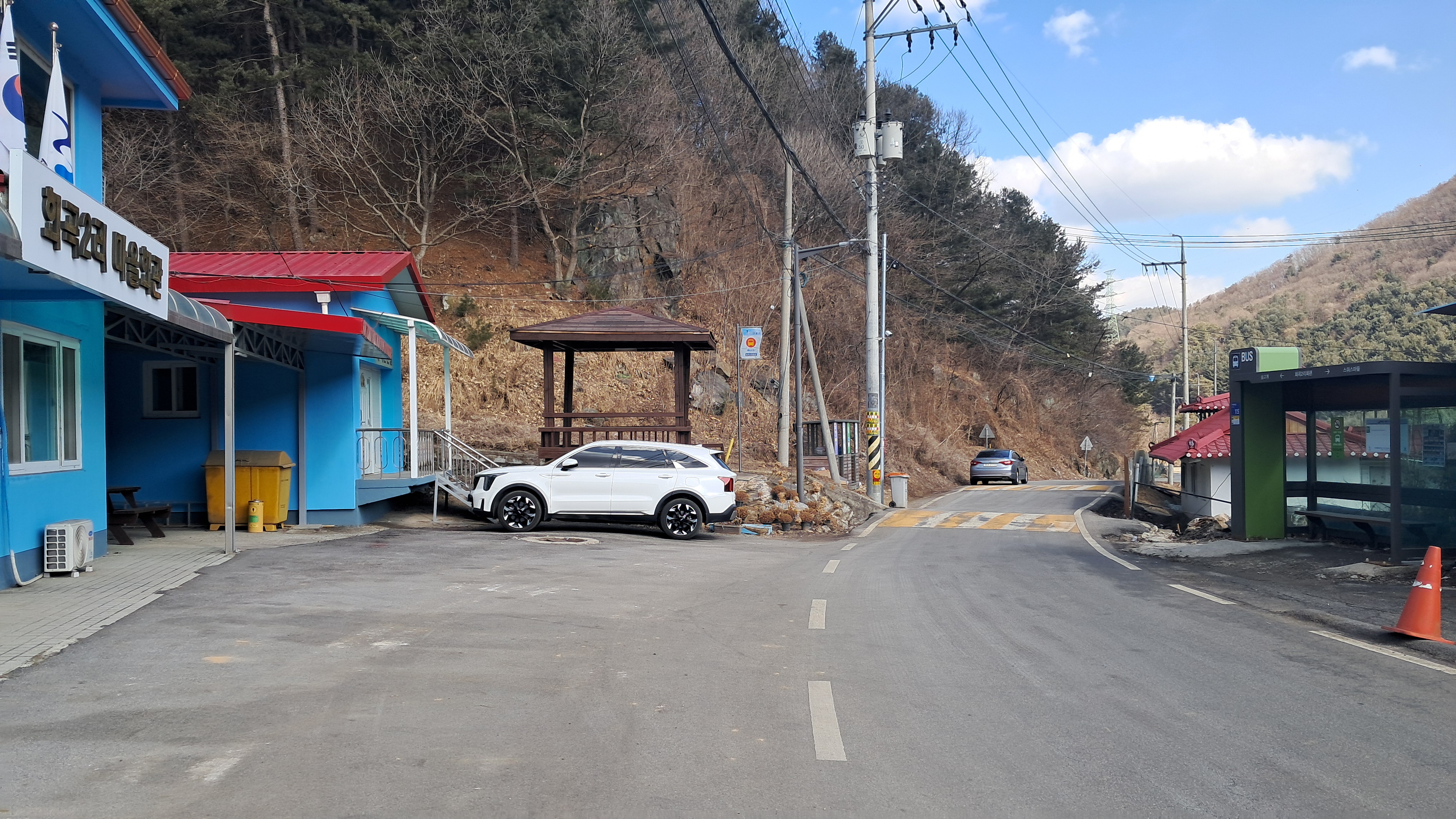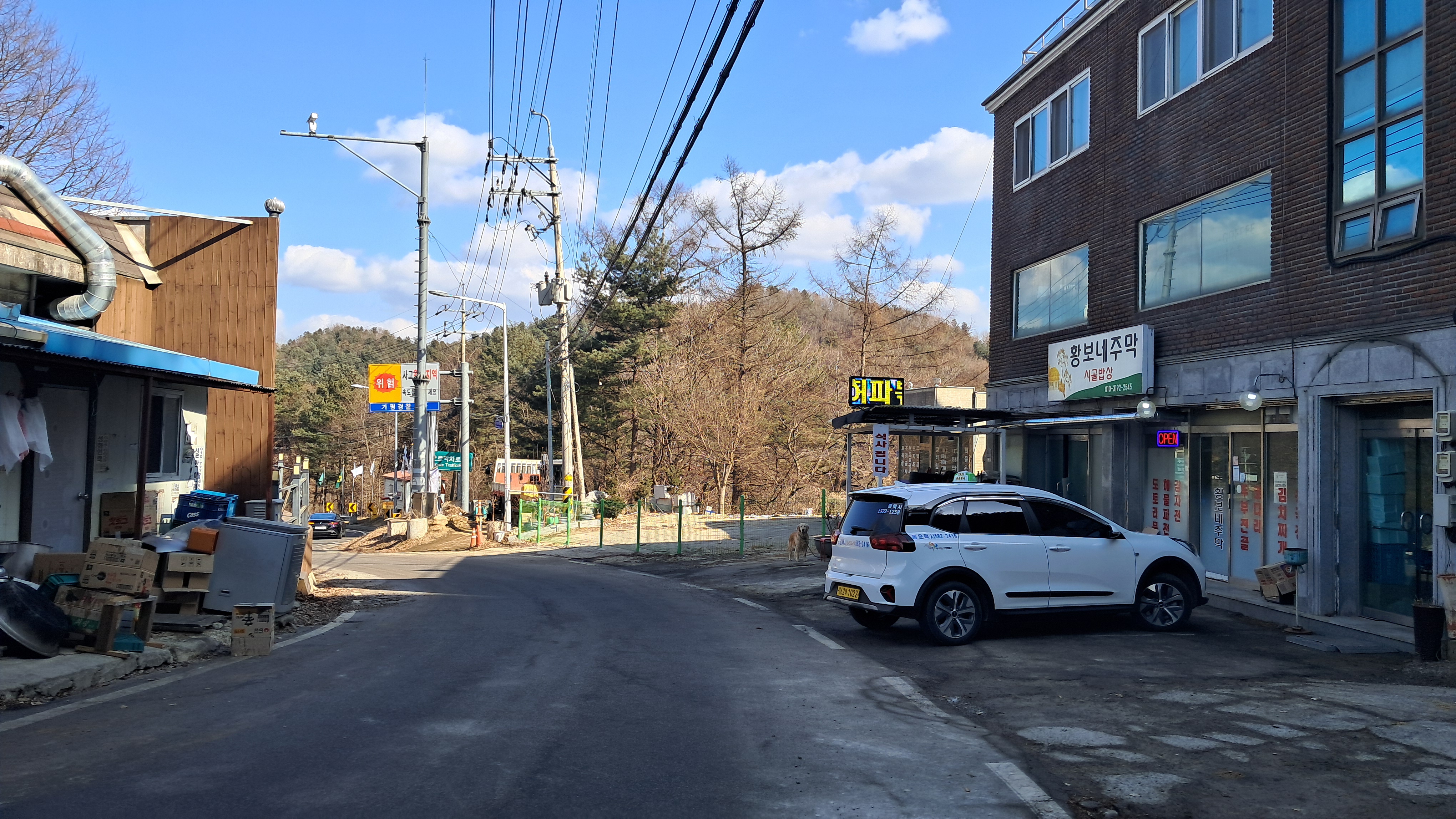 골목을 따라가다가 좌측으로 방향을 돌리면 자동차가 다니는 도로가 나옵니다.