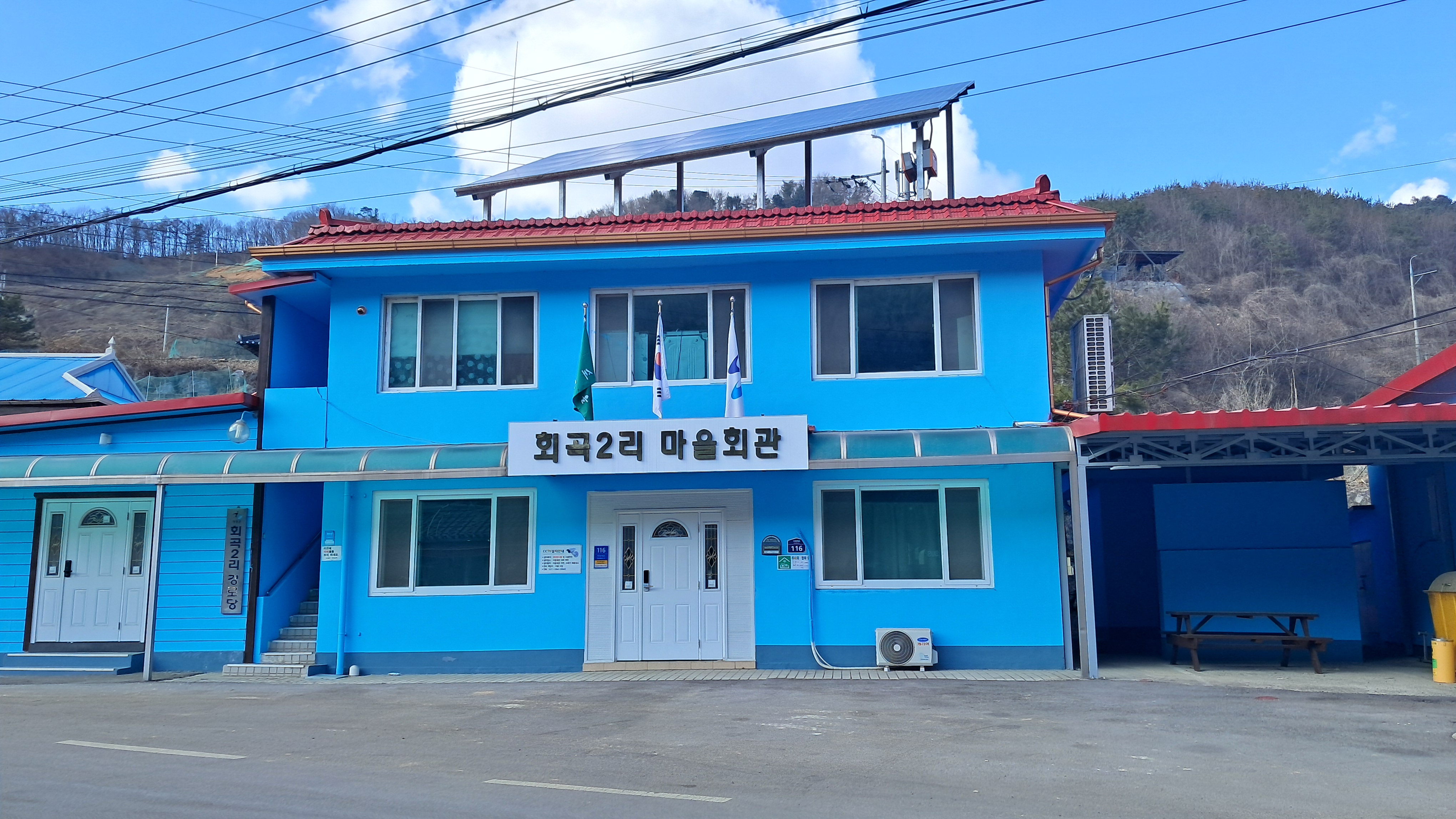 좌측으로 방향을 돌려 도로를 따라가면 회곡 2리 마을회관이 있습니다.