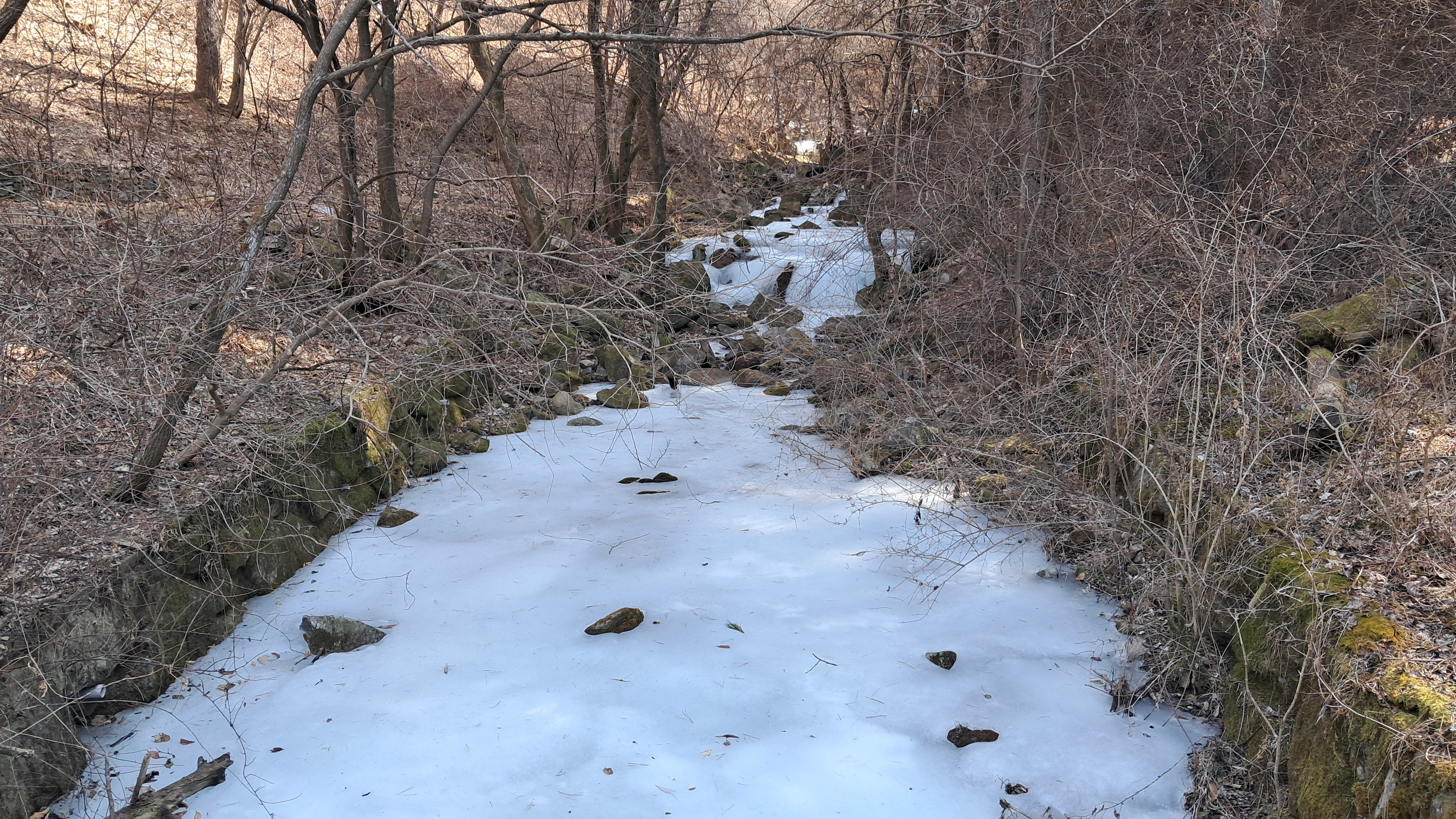 아직 이곳은 계곡에 얼음이 가득합니다.